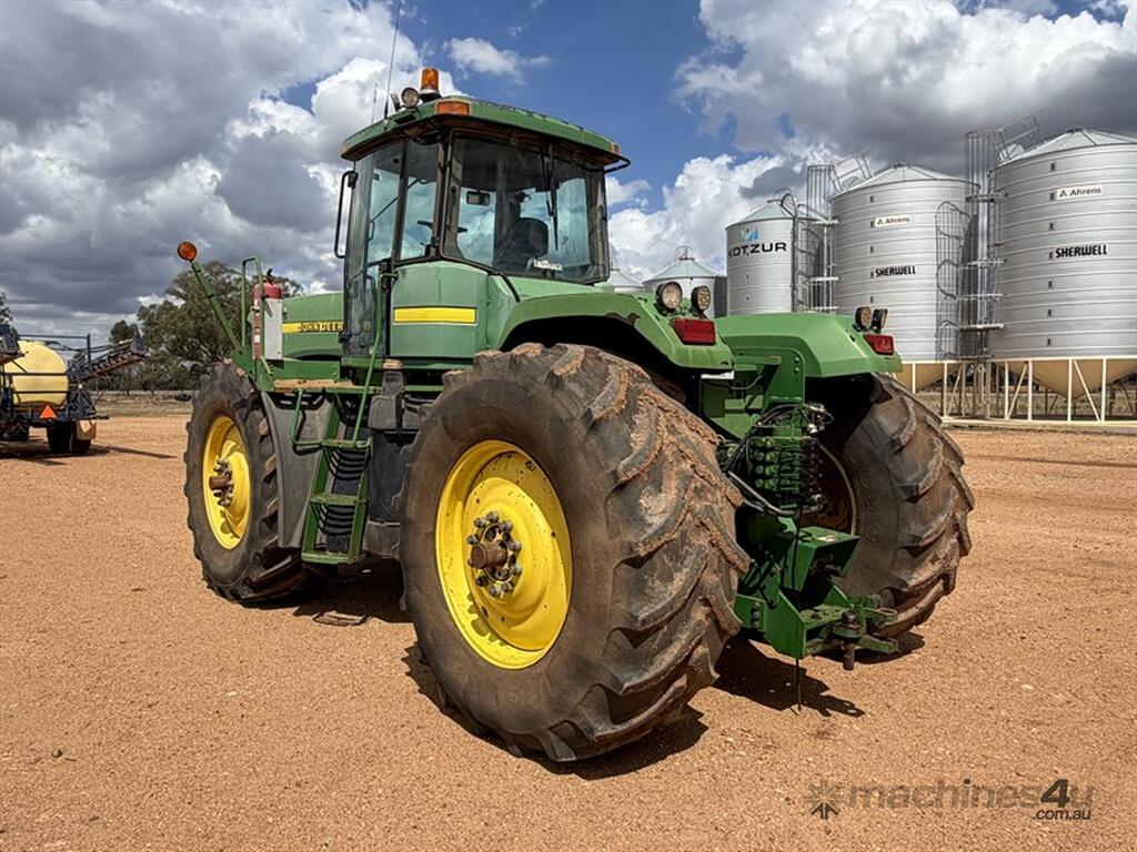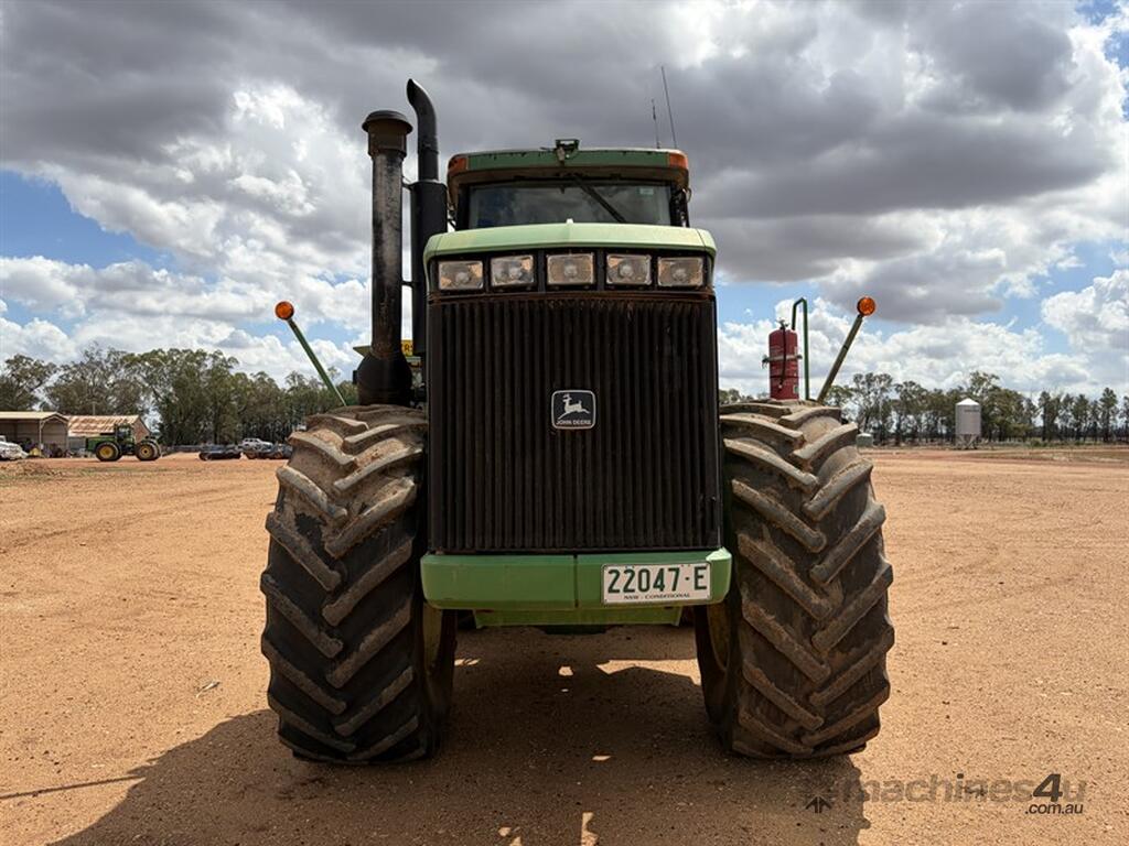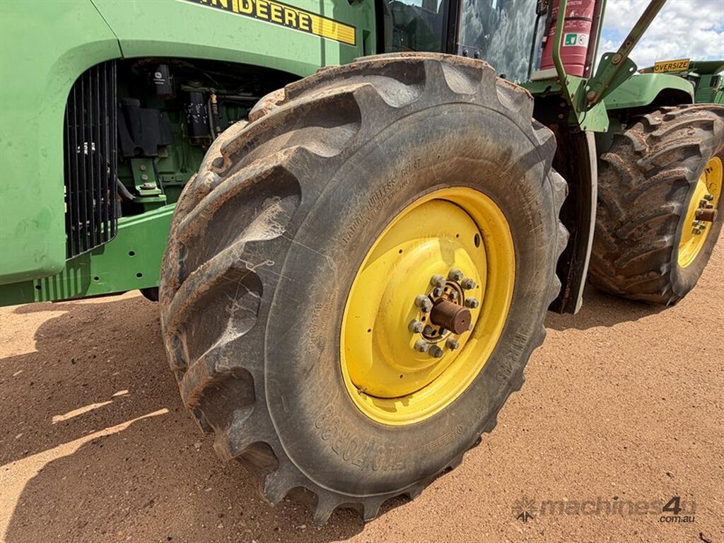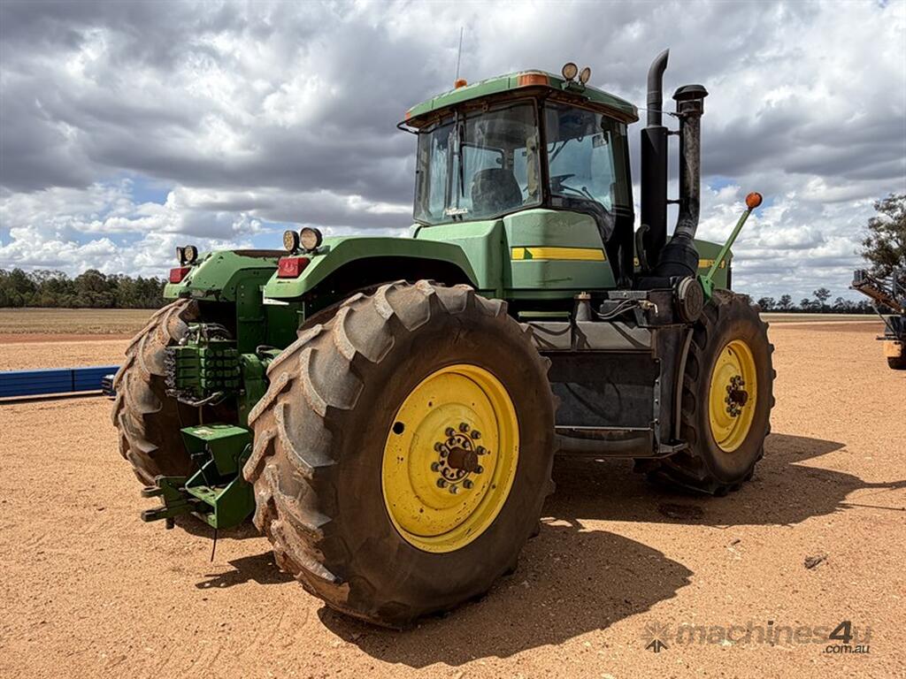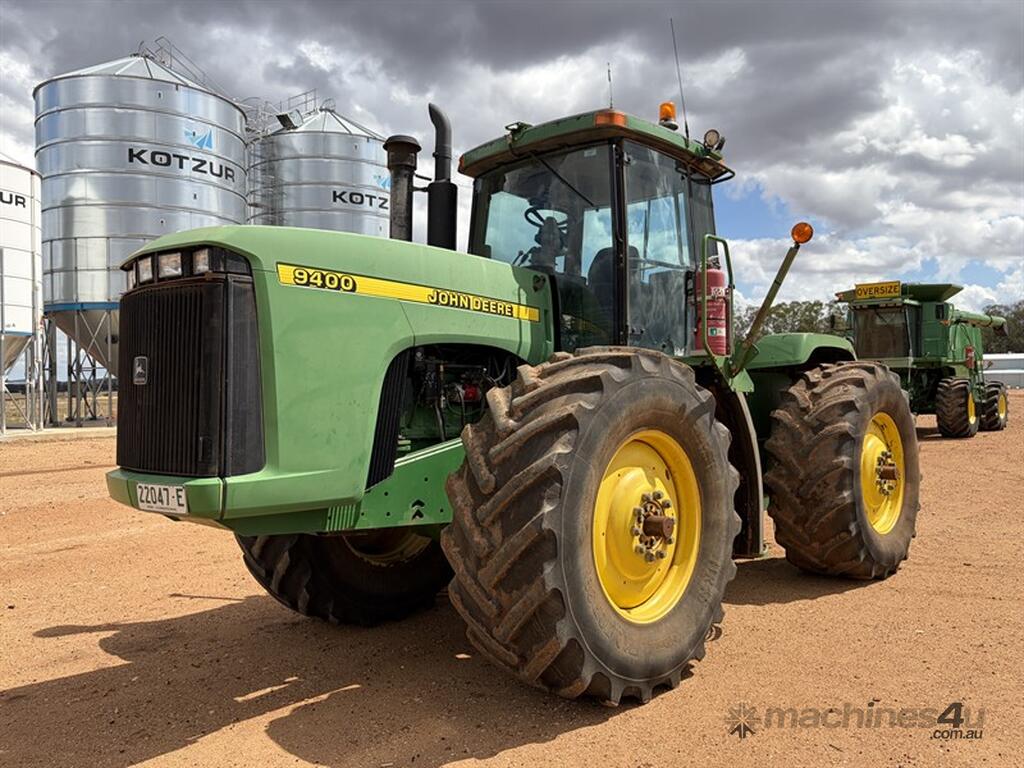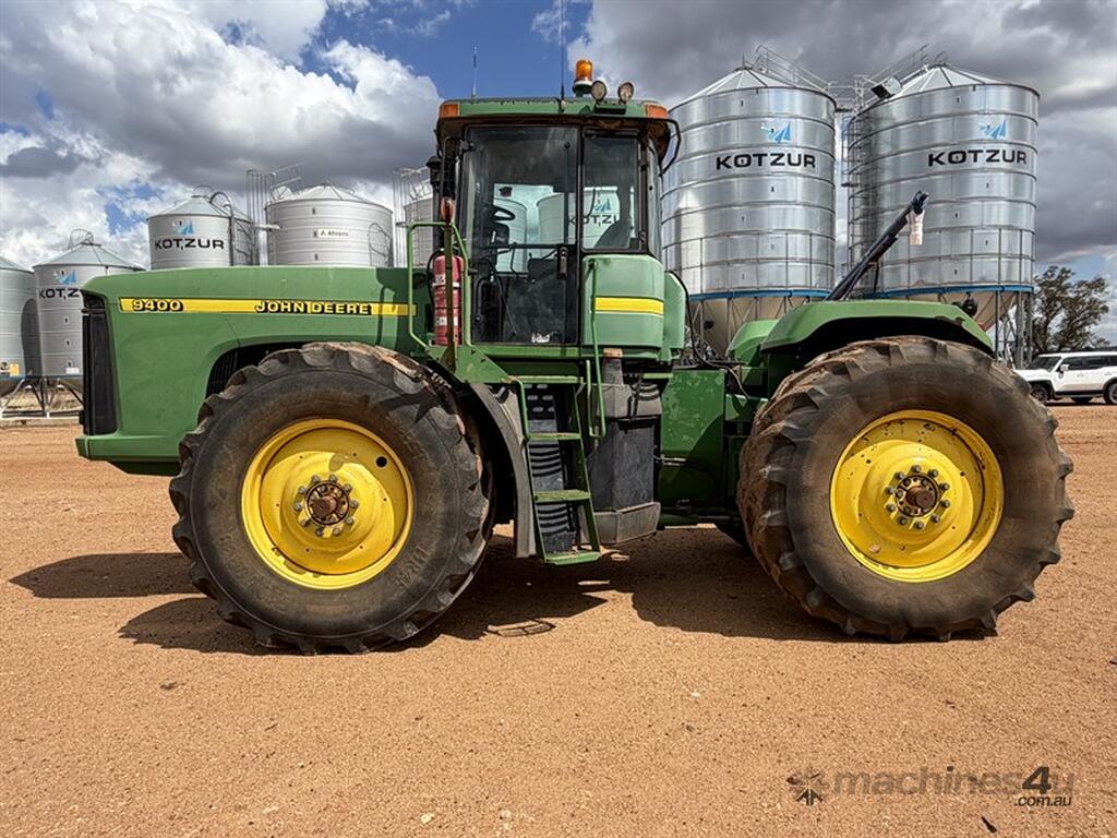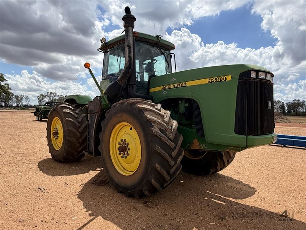 1999 JOHN DEERE 9400, S/N: RW9400H002629, showing 5203 hrs, 24 speed partial powershift transmission, 4 remotes with return & case drain, PTO, 710/70R38 tyres, rear weight pack, includes approx 3.6 tonne of wheel weights, outer dual hubs and rims (no tyres), Greenstar guidance with SF6000 reciever, 2600 display and ATU, ISOBUS harness, recently had new exhast fitted, runs and drives well, located Trundle NSW