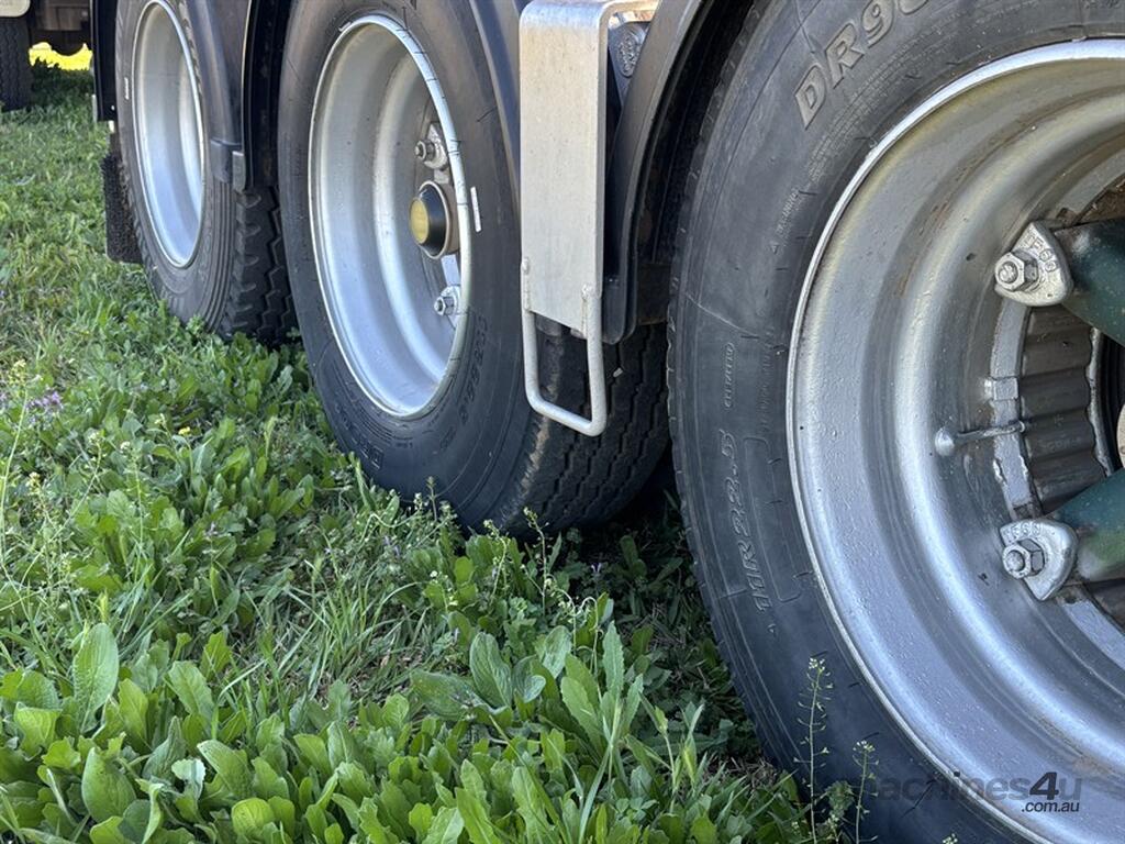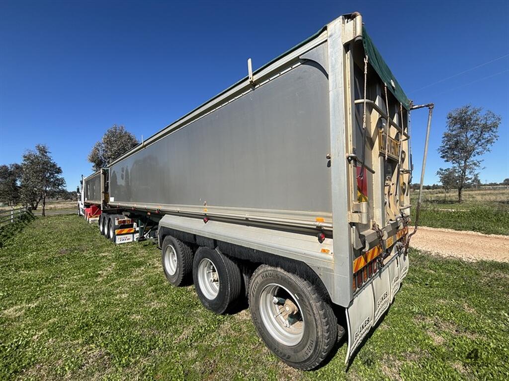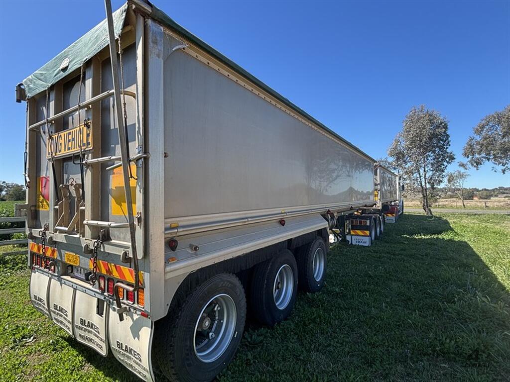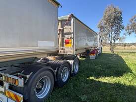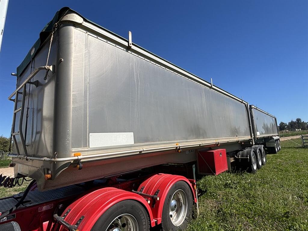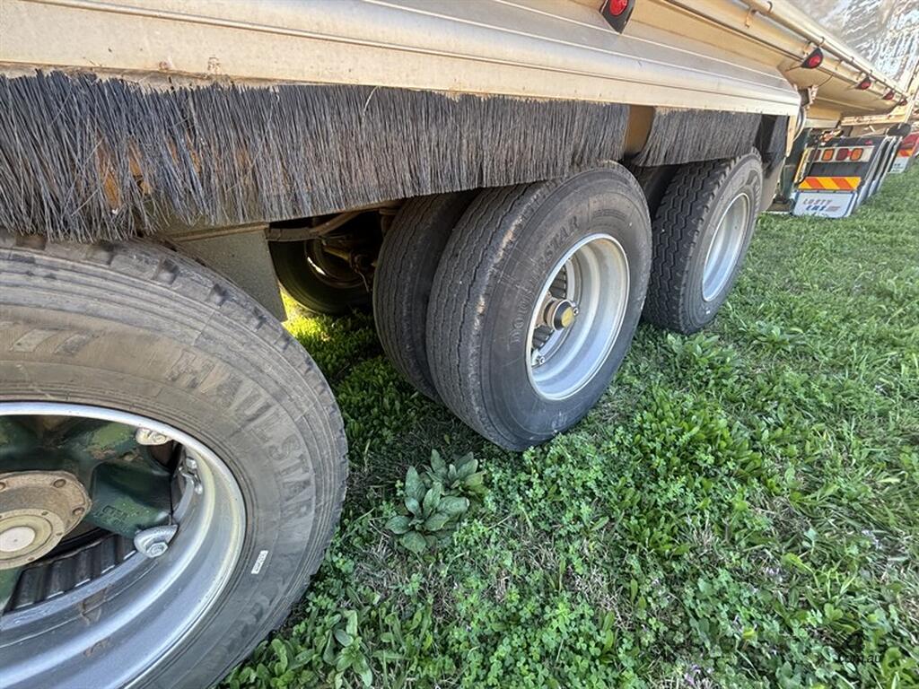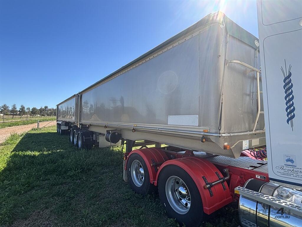 1999 LUSTY B-DOUBLE SET, sliding A-trailer VIN: 6F9T25000X25E3163 (no ringfeeder fitted) 28'x6' body, TOA b-trailer, VIN: 6F9T25000X25E3164, 34'x6', spider rims, airbag suspension all round with Rightweigh scales, roll over tarps, 3-way tailgates, both have current rego, whole unit presents very well, located Gunnedah, available through MRE Auctions, contact Jono