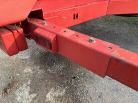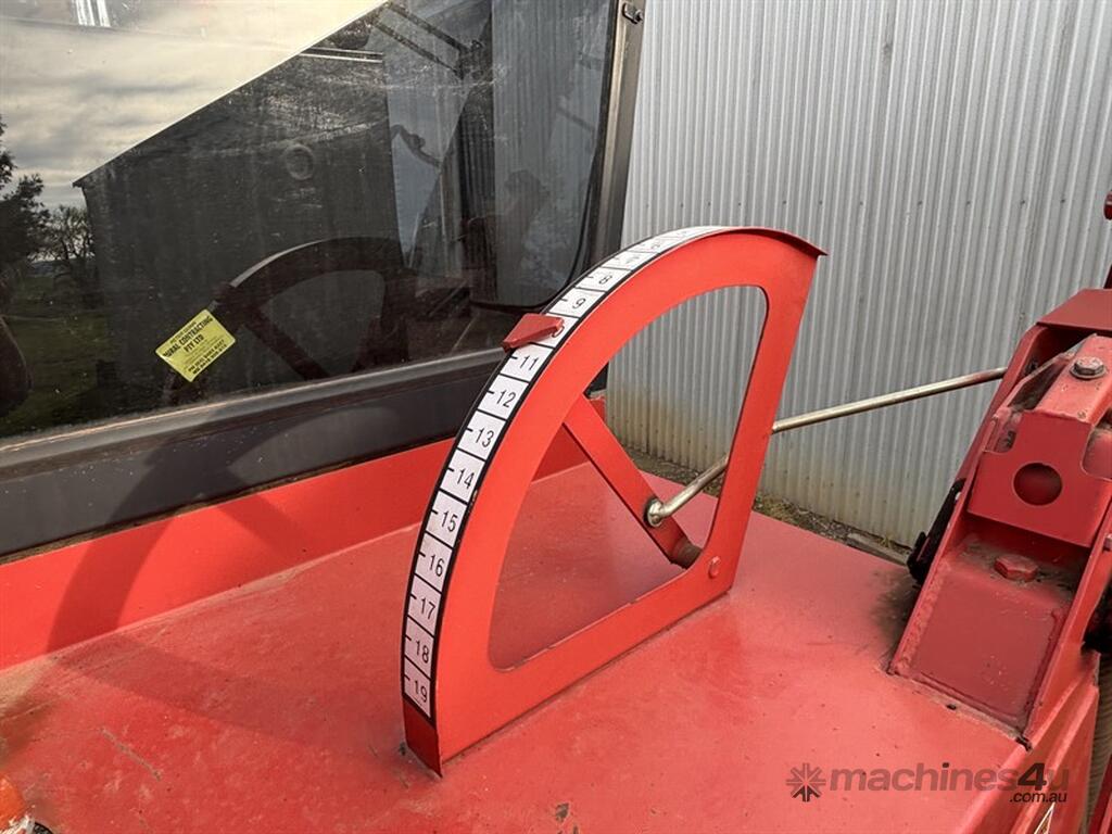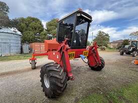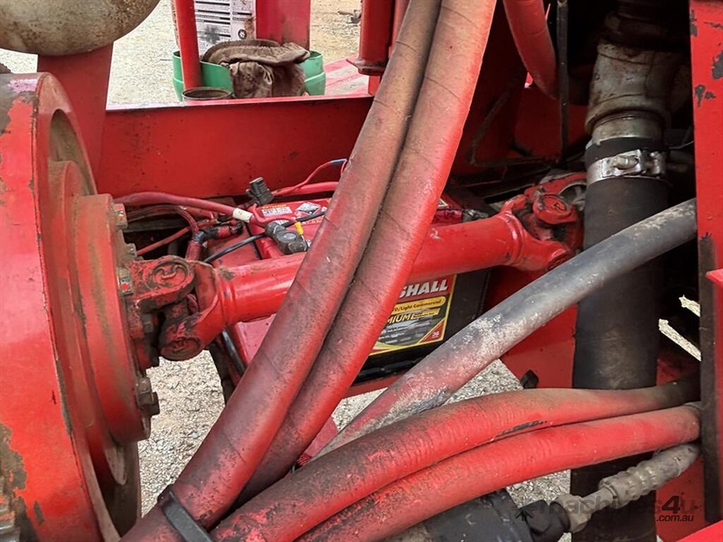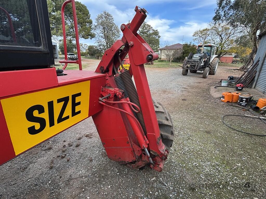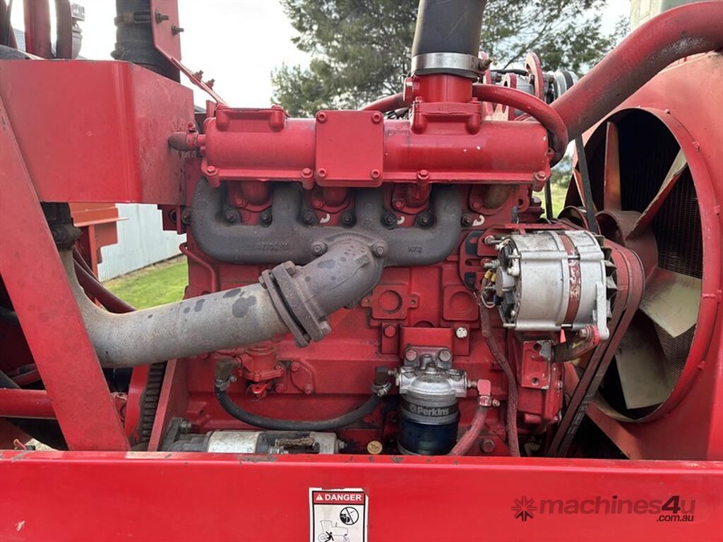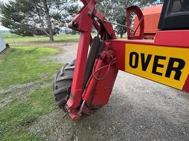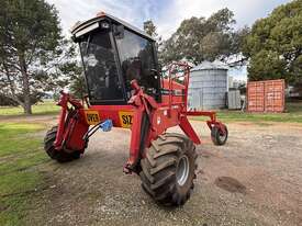 1999 MASSEY FERGUSON 220 SERIES II WINDROWER, S/N:H220585, genuine 1875hrs, 4cyl Perkins engine, extra hydraulic oil tank, NOTE: original silver rear rim also included, comes with 26' front on trailer, tyne reel, vertical knives, always shedded, excellent condition, located Peak Hill