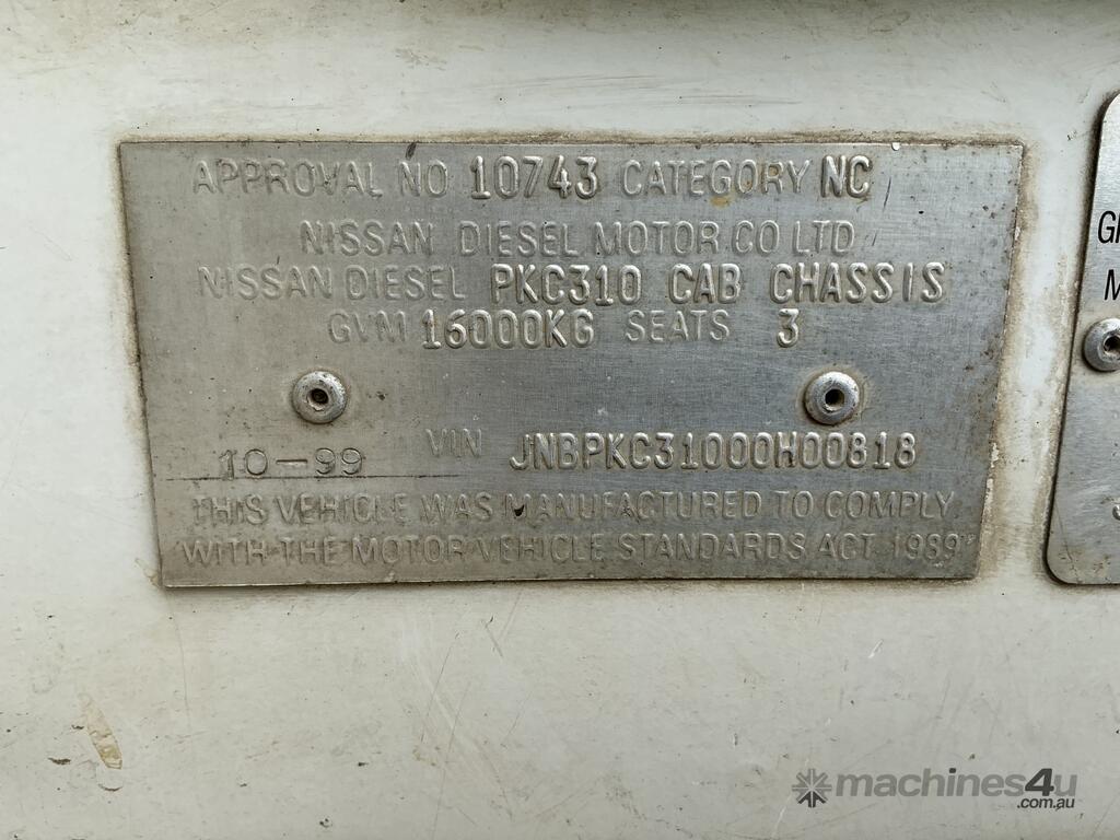 CP: 10/1999,Nissan UD,PK250,Tipper,Manual,Leaf Spring Suspension,6 Cyl,Diesel,207671 (Kms. Showing on Odometer),6846 (Hrs. Showing on Hour meter),Rego. No: XN81ZH,VIN: JN8PKC31000H00818,GVM: 16000,GCM: 26000,Sold with No Plates