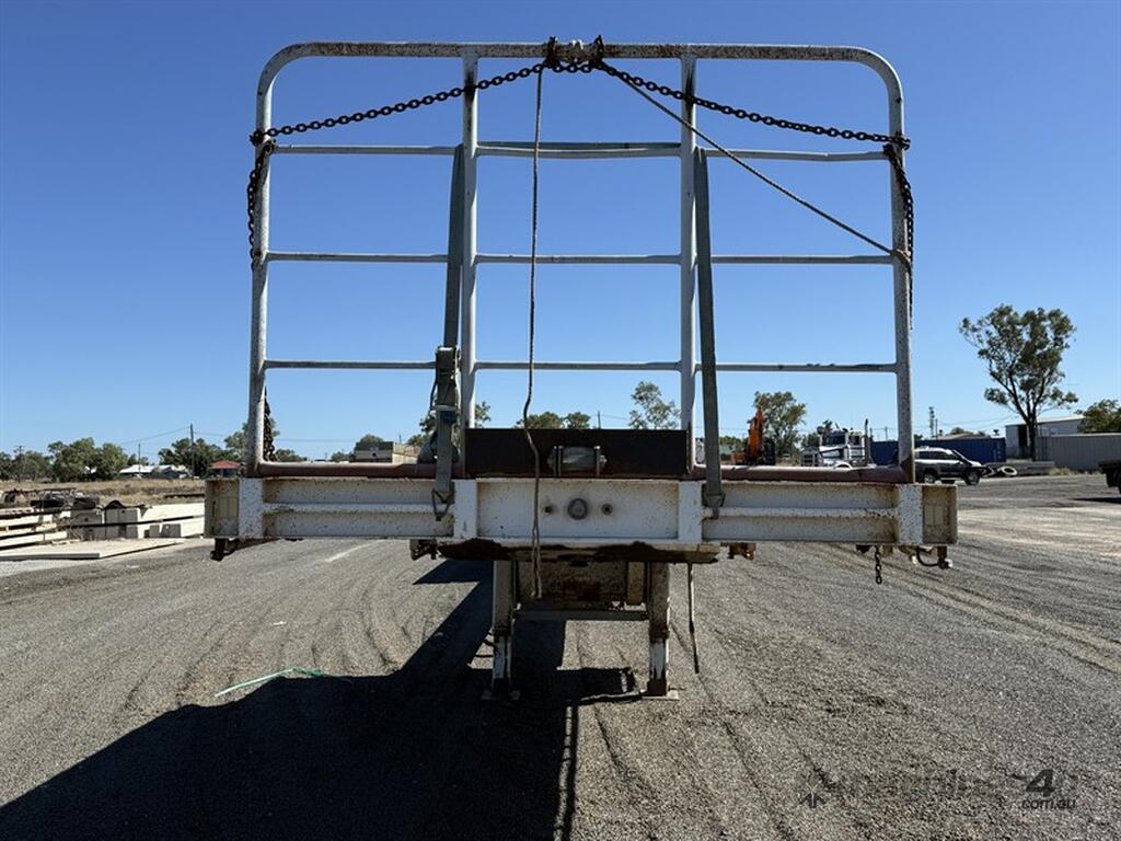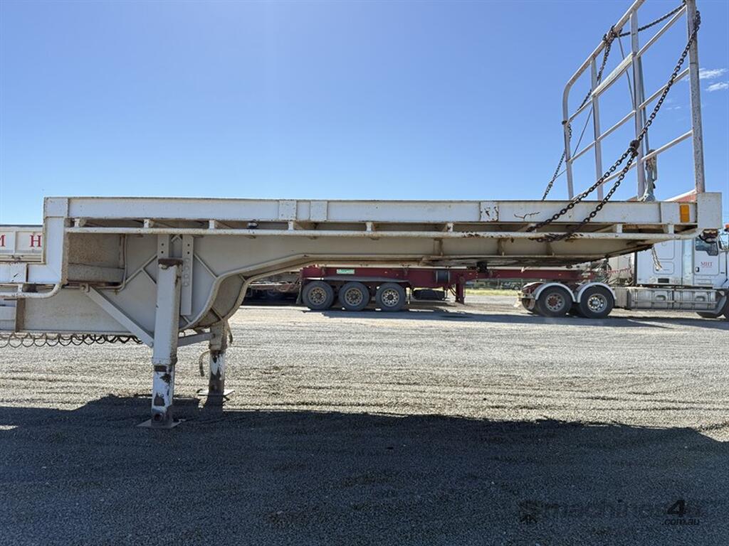 1999 TRIANGLE TRANSPORT EXTENDABLE FLAT TOP TRAILER. VIN 6B9T25000X2Z22001. Measuring 24.4 metres when extended. 14.6 metres when closed. Spring suspension. Spider hubs. Located Walgett, NSW