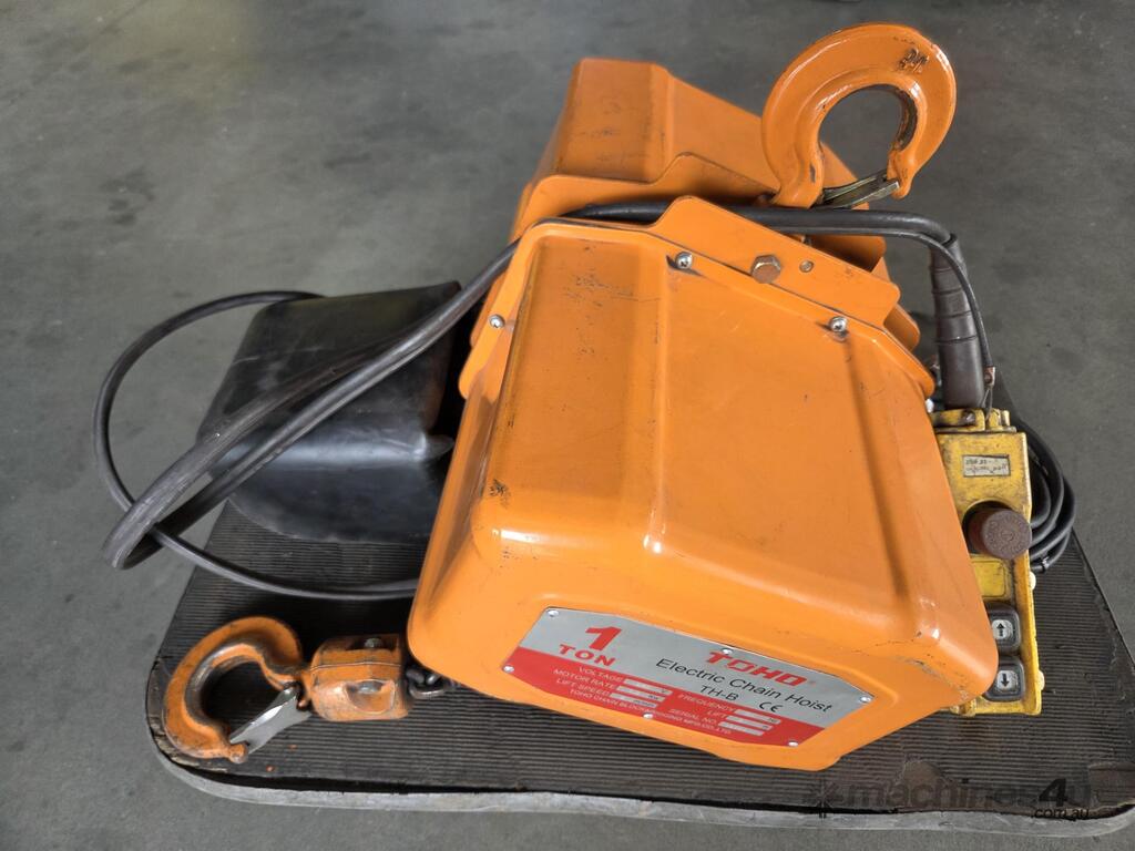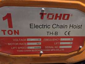 2. TOHO TH-B100 1-TON 240v ELECTRIC CHAIN HOIST, HEAVY DUTY, MADE IN JAPAN Year 2015, 3m HOOK, AS NEW