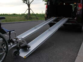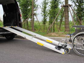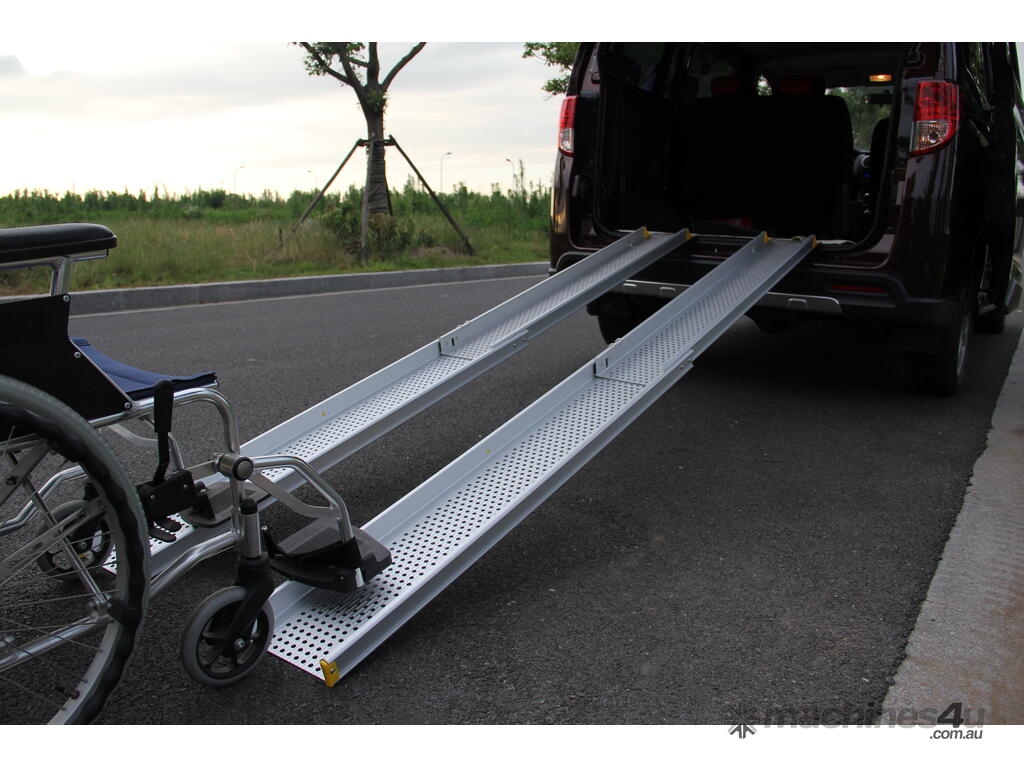 Two section telescopic wheelchair ramp can be stopped at any position.