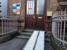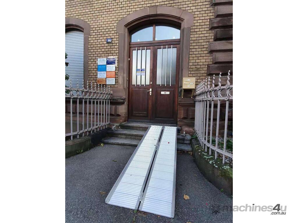 Lightweight folding wheelchair ramps that provide wheelchair access over any kerb or step.
