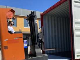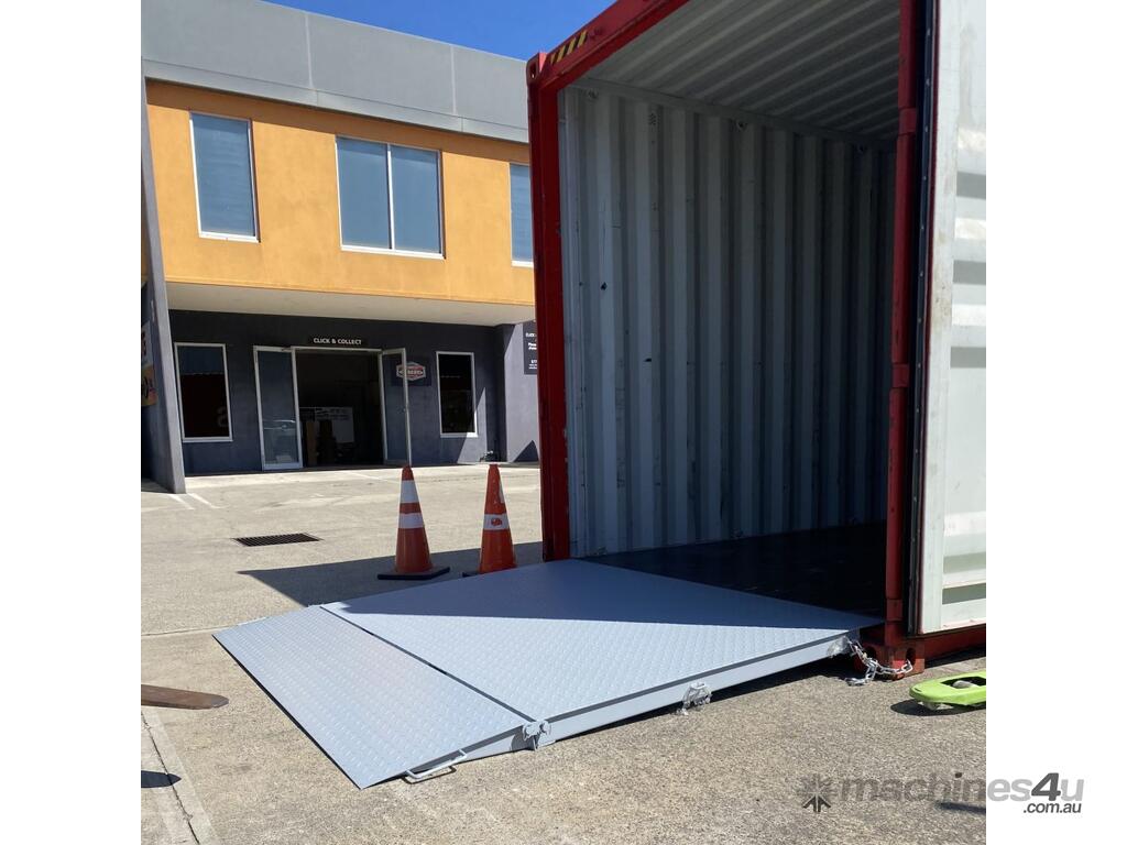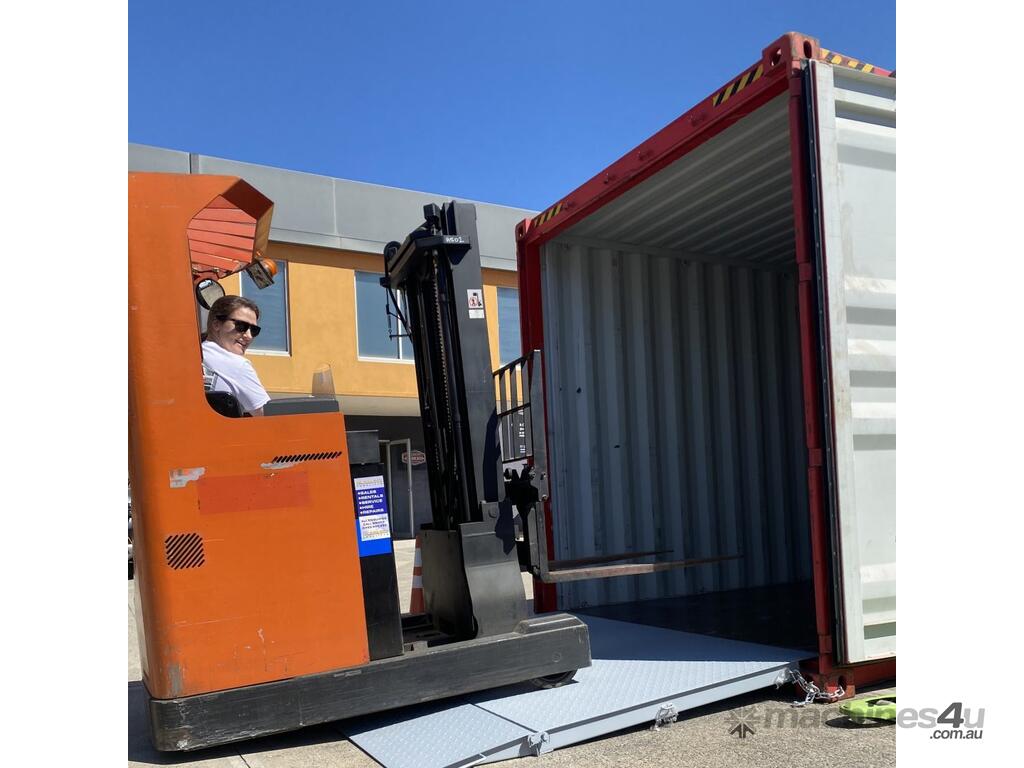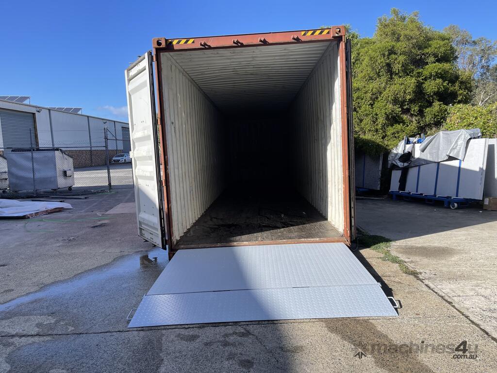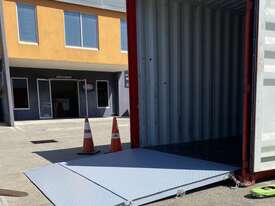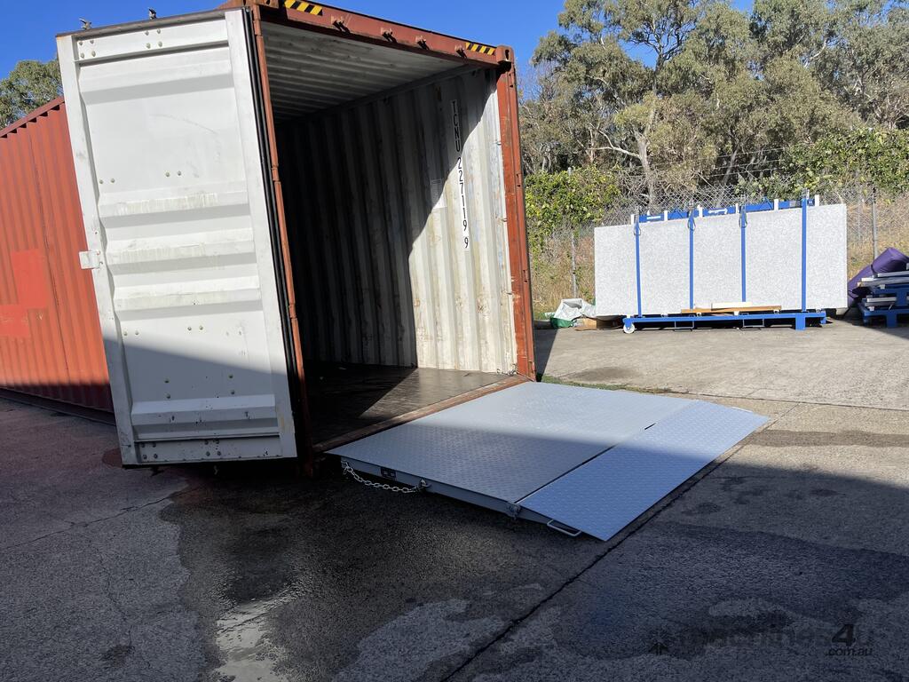 This container ramp is designed primarily for bridging into a standard container from ground level.