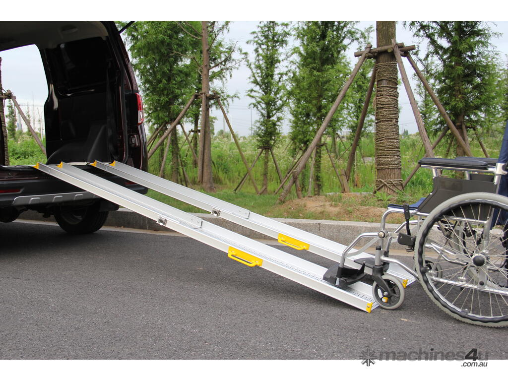 Two section telescopic wheelchair ramp can be stopped at any position.