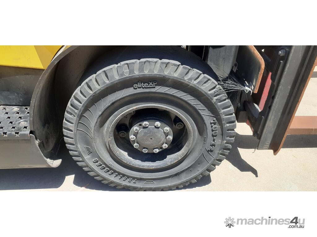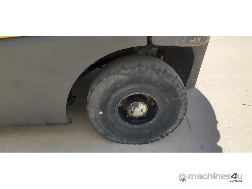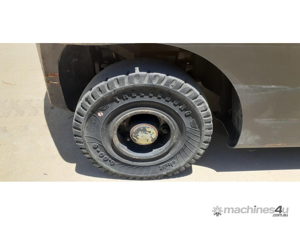 Unit is equipped with integral side-shift and puncture proof tyres.