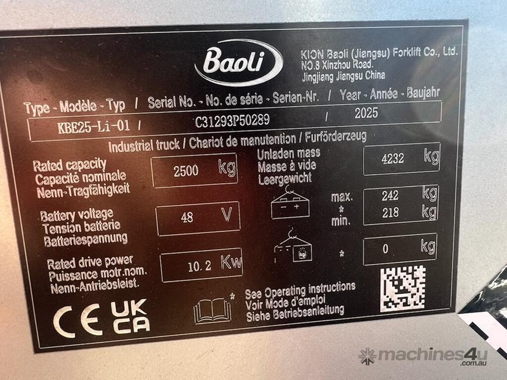 The Baoli KBE series is a tough, energy efficient electric counterbalance forklift truck featuring low maintenance requirements and the optimum balance of energy consumption. Manufactured in a state-of-the art facility, it is built to deliver long-term reliability and performance. The Baoli KBE series are designed to have low operating costs, and are suitable for intense indoor and outdoor use.