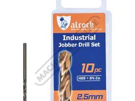 ALCOCK Ø2.5mm HSS Jobber Drill Pack - 10 Piece M35 Grade HSS with 5% Cobalt 135º Precision Ground Flute & Split Point