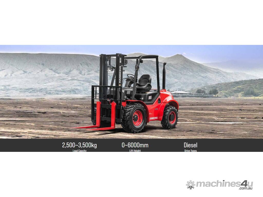 Hangcha 2.5t to 3.5 2WD/4WD rough terrain forklifts is a tough, compact forklift. It is world renowned for superior performance, economy and longevity.