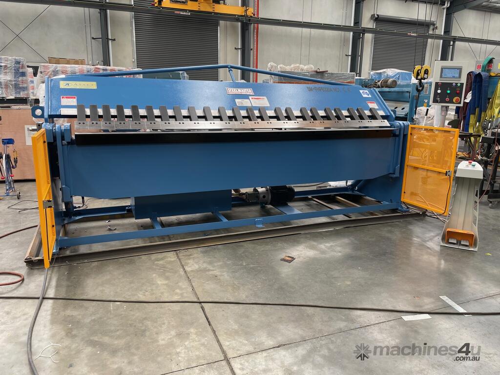 SM-FHPB3204NC2. Panbrake Folder. Full Hydraulic. 3200mm x 4mm with NC2 Programmable Angle Controller New Roller Table Ballscrew Programmable Backguage, Hardened & Ground Fingers, Safety Guards. V
