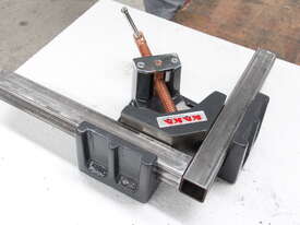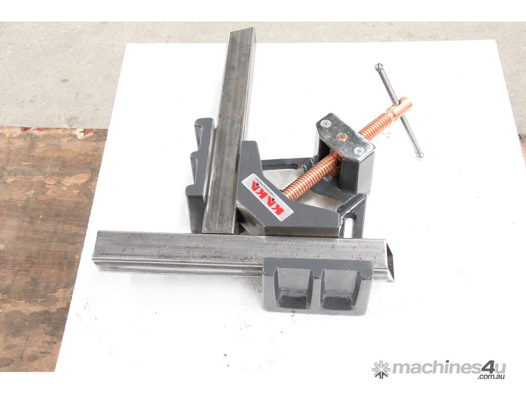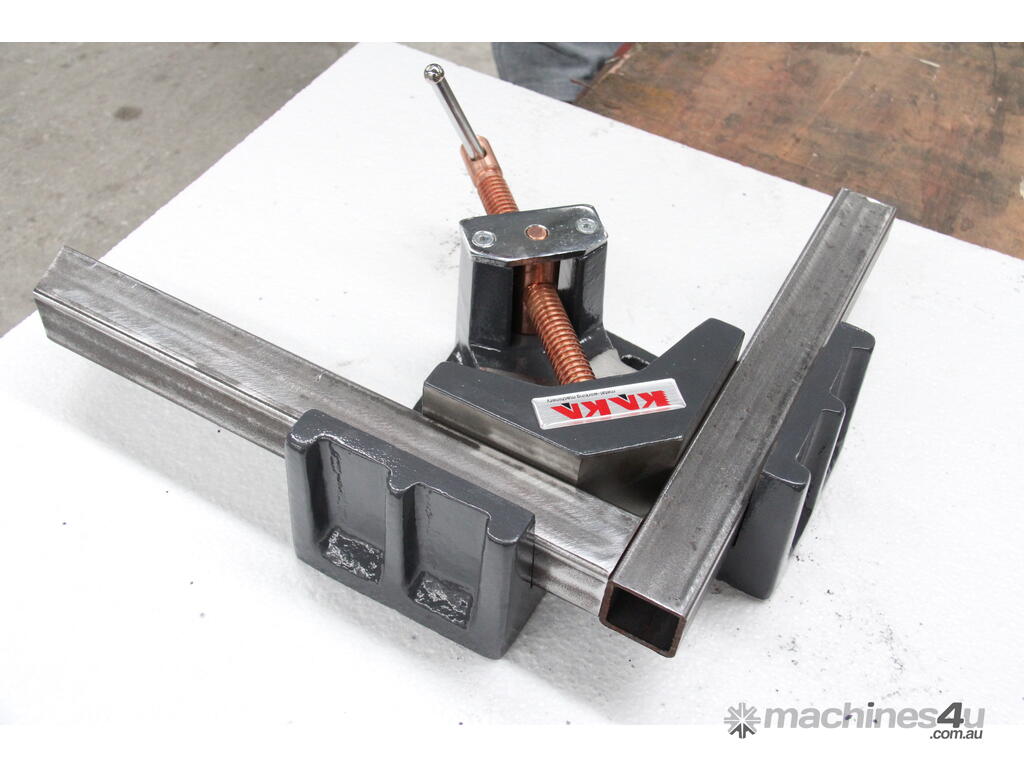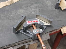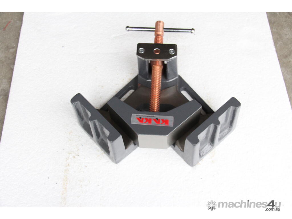 The KANG AC-60 2-Axis Welders Angle Clamp (also known as the 2-Axis Fixture Vice) is a compact, entry-level professional clamping tool designed for precise 90-degree joint alignment in welding, tacking, fabrication, and assembly tasks. Constructed from machined ductile cast iron for exceptional durability and heat resistance, it securely holds materials such as square/rectangular tubing, angle iron, flat stock, or box section at perfect right angles. The two-axis design allows clamping from both directions for superior stability and alignment, with machined outside faces that enable use in upright or vertical positions. It includes a stand-off design for increased weld access and a standard threaded screw with a copper-plated spindle (resists weld spatter)