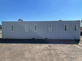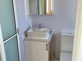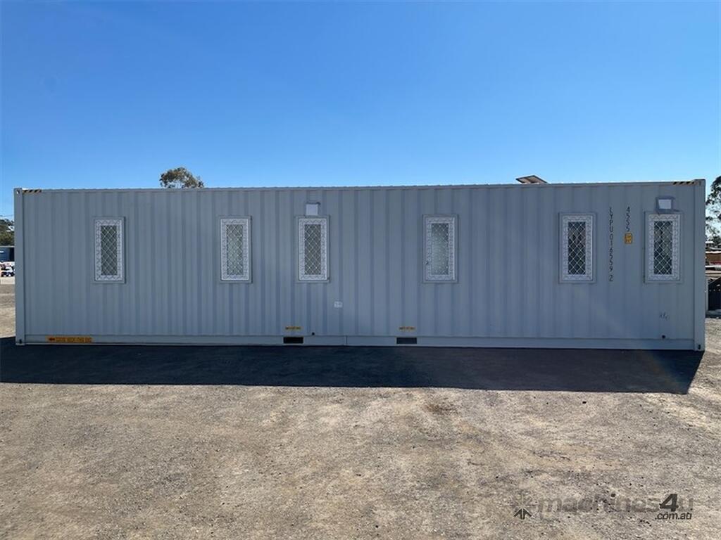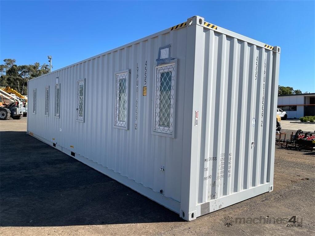 2 ROOM 40FT PORTABLE ACCOMODATION MODULE, HIGH CUBE CONTAINER, EACH ROOM FITTED INDIVIDUALLY WITH SHOWER, TOILET, VANITY, KITCHENETTE WITH SINK, INSULATED WALLS, WINDOWS, STORAGE COMPARTMENT. FORK POCKETS, BUYER WILL NEED TO ARRANGE A CRANE, TILT TRAILER OR BOX LOADER TRAILER TO LOAD THIS ASSET. EACH ROOM DIMENSIONS: 2.22m W x 4.7m L. SHIPPING DIMENSIONS: 12.9m L x 2.44m W x 2.9m H. APPROX. WEIGHT: 5750KGS. LOCATION: HALFERTY STREET, EMERALD, QLD 4720. INSPECTIONS & COLLECTIONS: MONDAY TO FRID