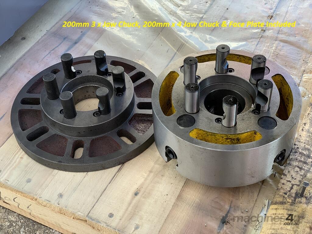 * 200mm 3 & 4 jaw chucks, faceplate, fixed & travelling steadies standard