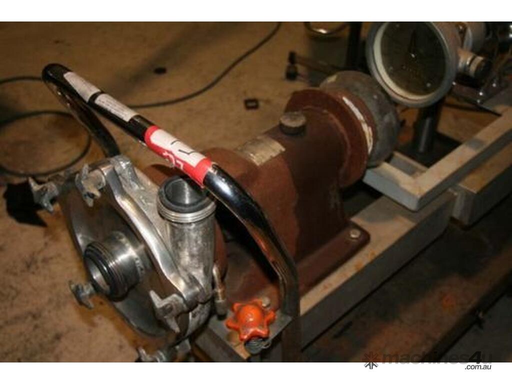 This 2” port Sanitary Centrifugal Pump has BSM fittings and is of quick knock down easy cleaning design, the pump and bearings are actually in good condition in spite of the superficial rust on the bearing housing, the stand its attached to is all stainless and it was no doubt used in an area subject to caustic and or steam wash down.