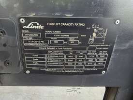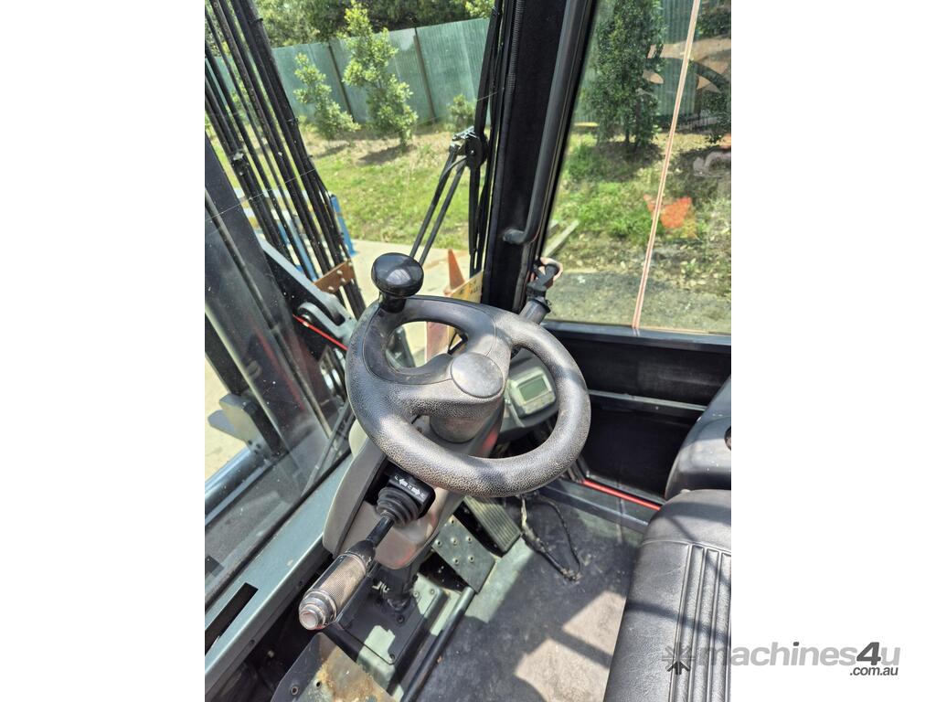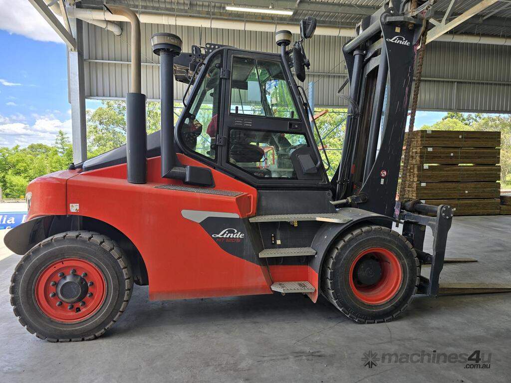 Forklift 1: 358 Series Used H120D Forklift for sale. It has been well maintained, and is in good condition. It has front and rear camera's and a rear presense sensing system. The Tyne length is 2130mm, it has been used in a timber yard. Hours are 8048, It has been fully serviced by Linde. It was our main forklift as a Linde rental until 12-18 months ago, unloading packs up to 10t in weight. After the rental term we purchased it outright, it has since been operating as the spare machine. Our business direction and forklifting requirements have changed, it is no longer required. Mast height is 4900mm, the cabin is fully enclosed with air-conditioning.