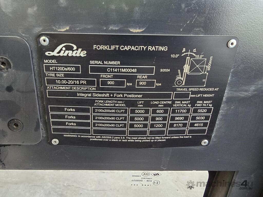 Forklift 2: HT120Ds/600 - 1411 Forklift for sale. The original quote and specification sheet are attached, the same specification as Forklift 1, but the machine is less than 2 years old. Serial No : C11411M00048. Year is 2024, hours are approximately 2700. We will sell this machine for $195000 + gst, original purchase price was $276827.00 + gst in 2024. I can supply the original quote and specification to interested buyers.