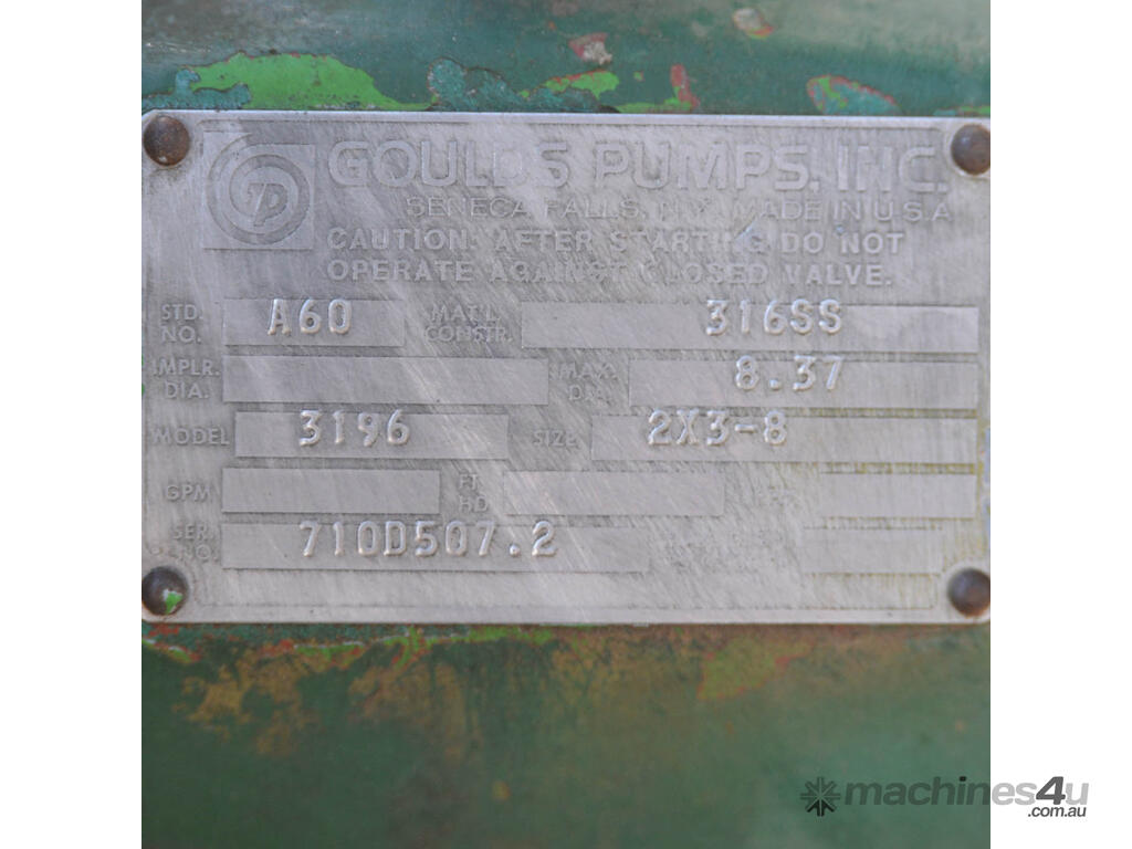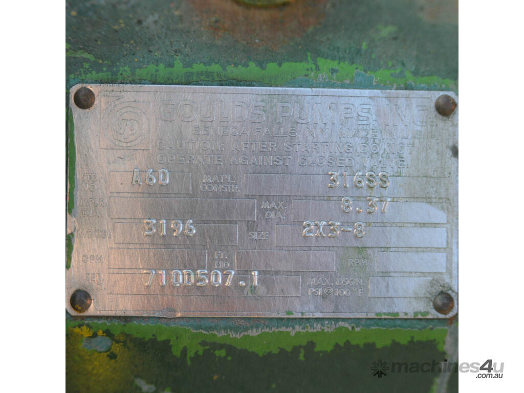 Goulds 3196 2inch x 3 inch 316 stainless chemical process pump 7.5kW 10HP Flame proof motor, removed from working environment due to chemical plant closure. Two available price it each motor brand varies but both the same specification and both flameproof