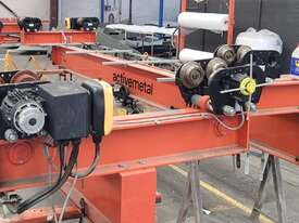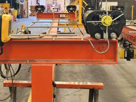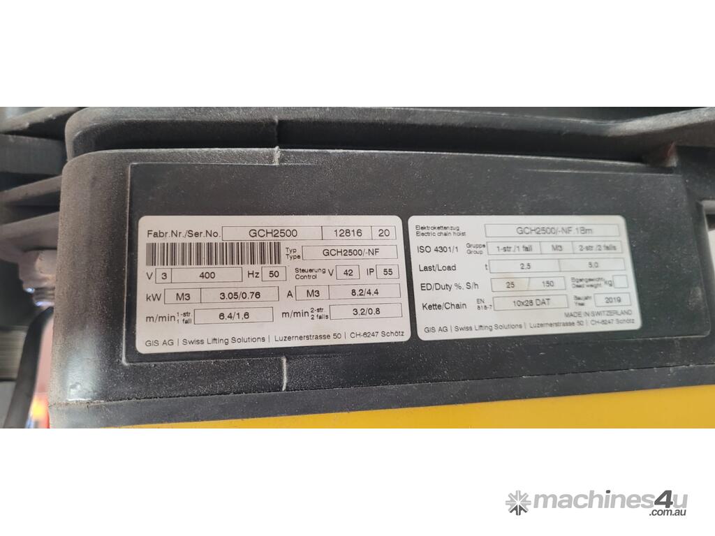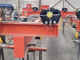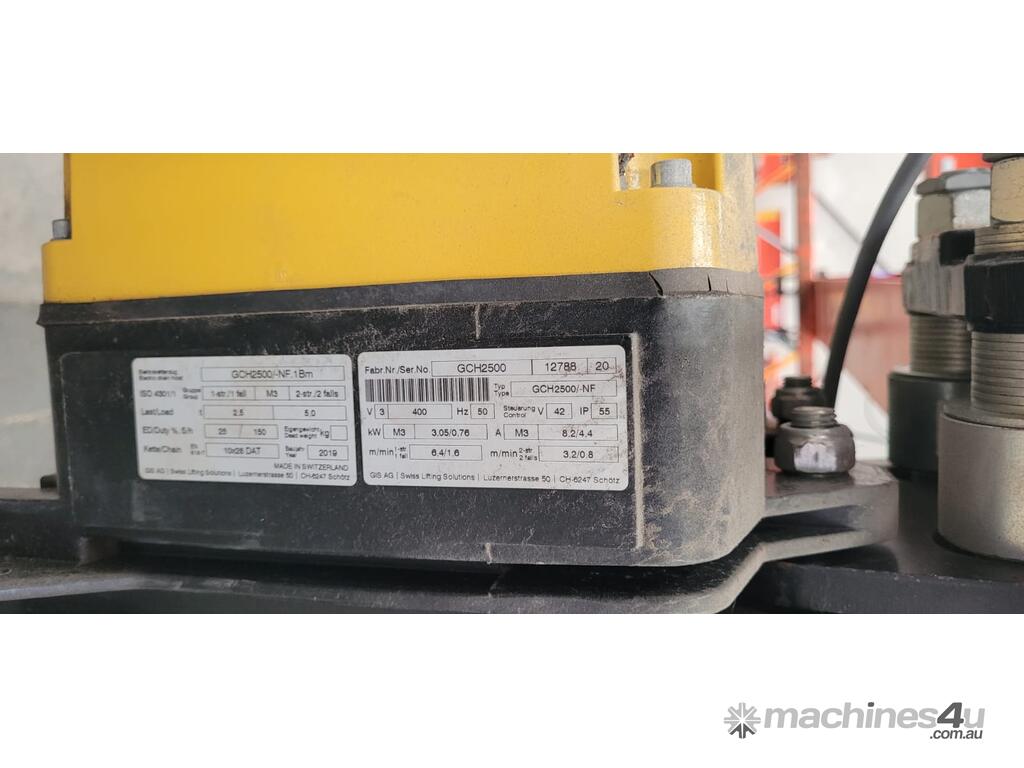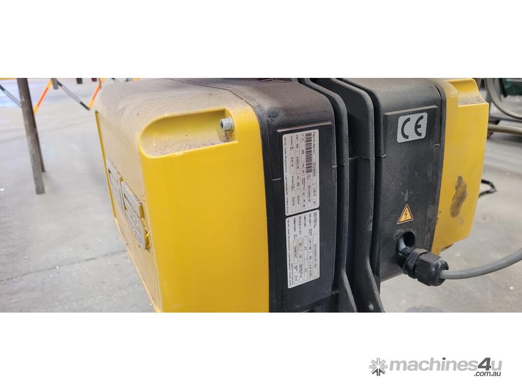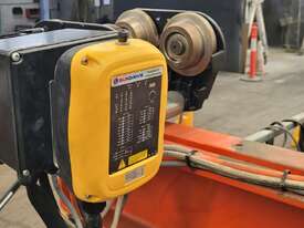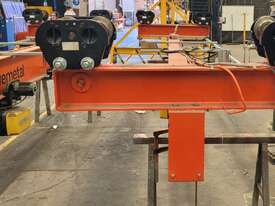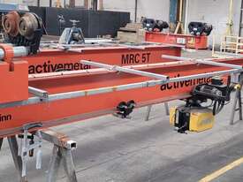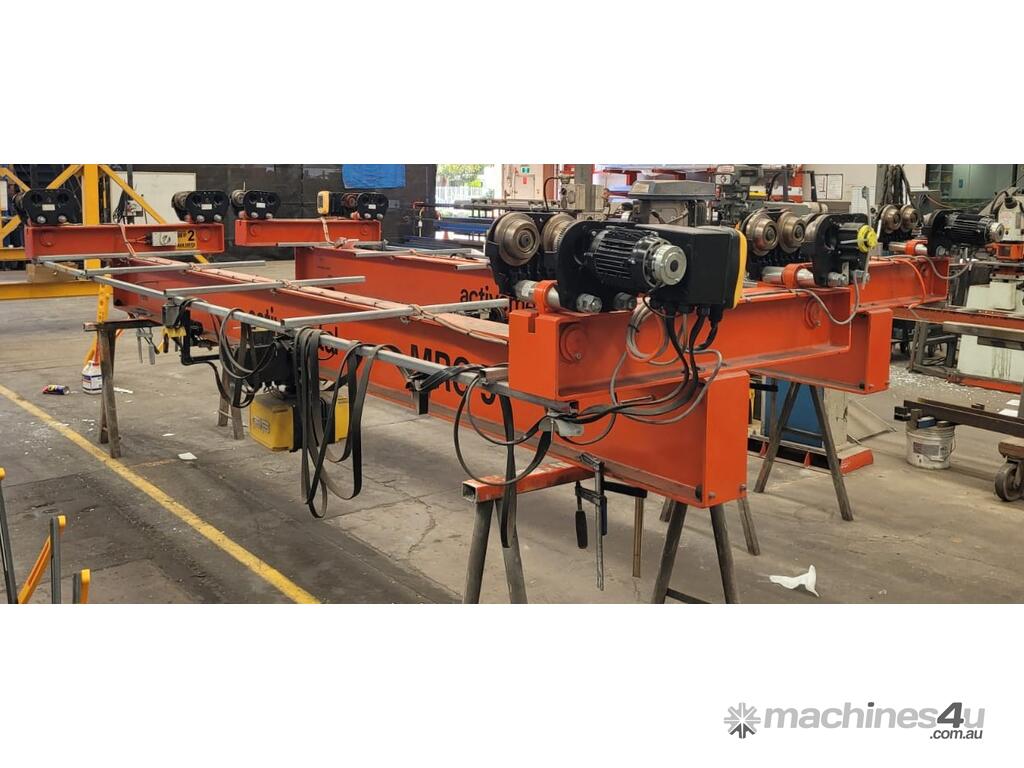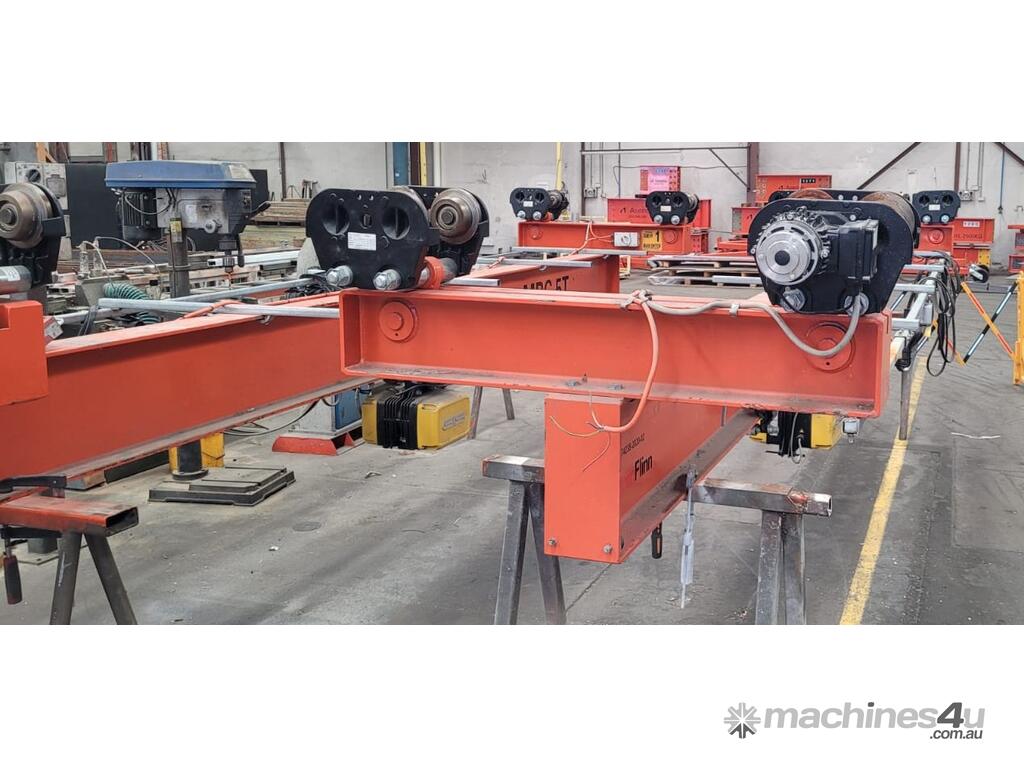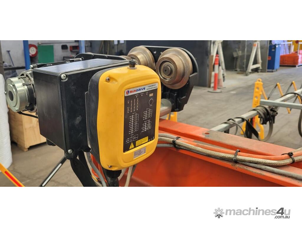 Still in Very Good Condition - Manufactured by Redfern Flinn, only used on one project. Two overhead travelling cranes (Beam length 5220mm) with a rated capacity of 5T, complete with 2 x 5T GIS 2 speed Electric Chain Hoists and Chain Boxes with a chain capacity for a 40m drop, GIS motors on cross travel and Sundrive remote controllers. Long Travel Beams not included.