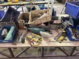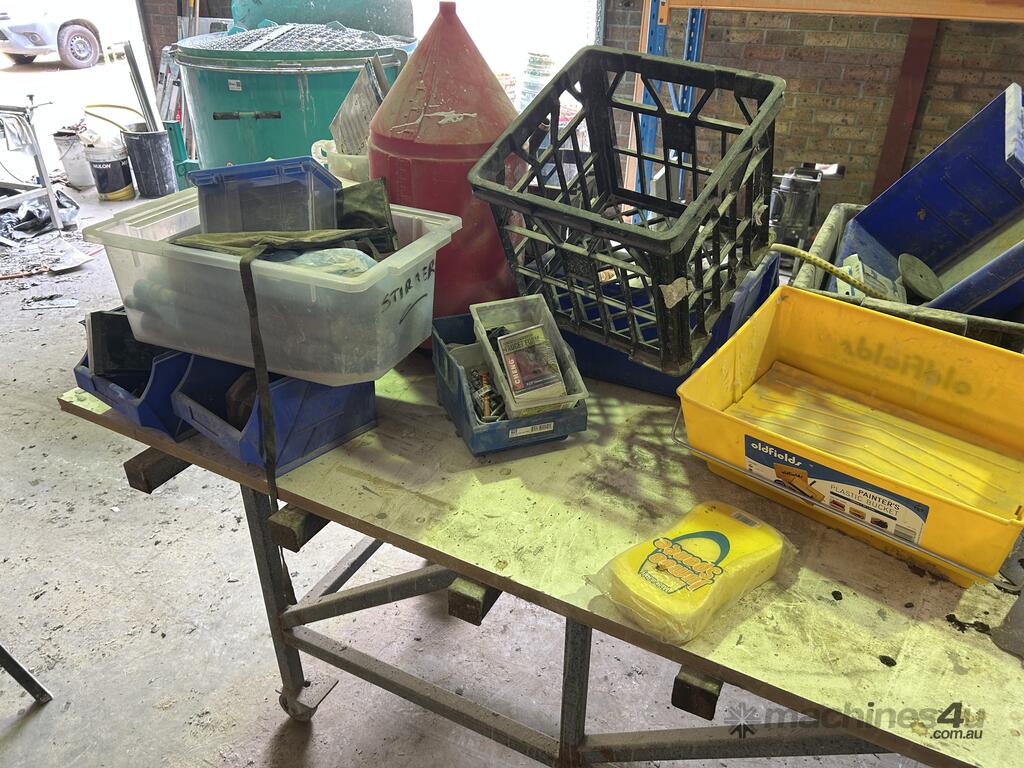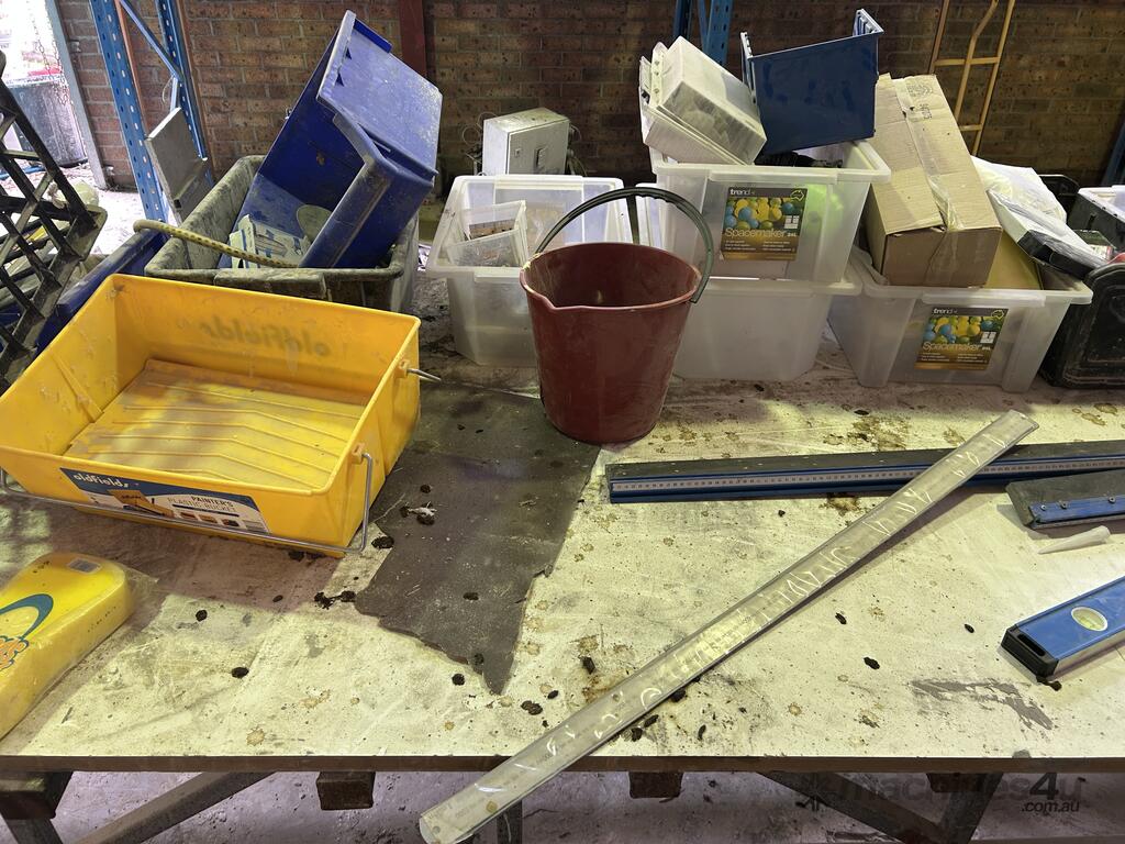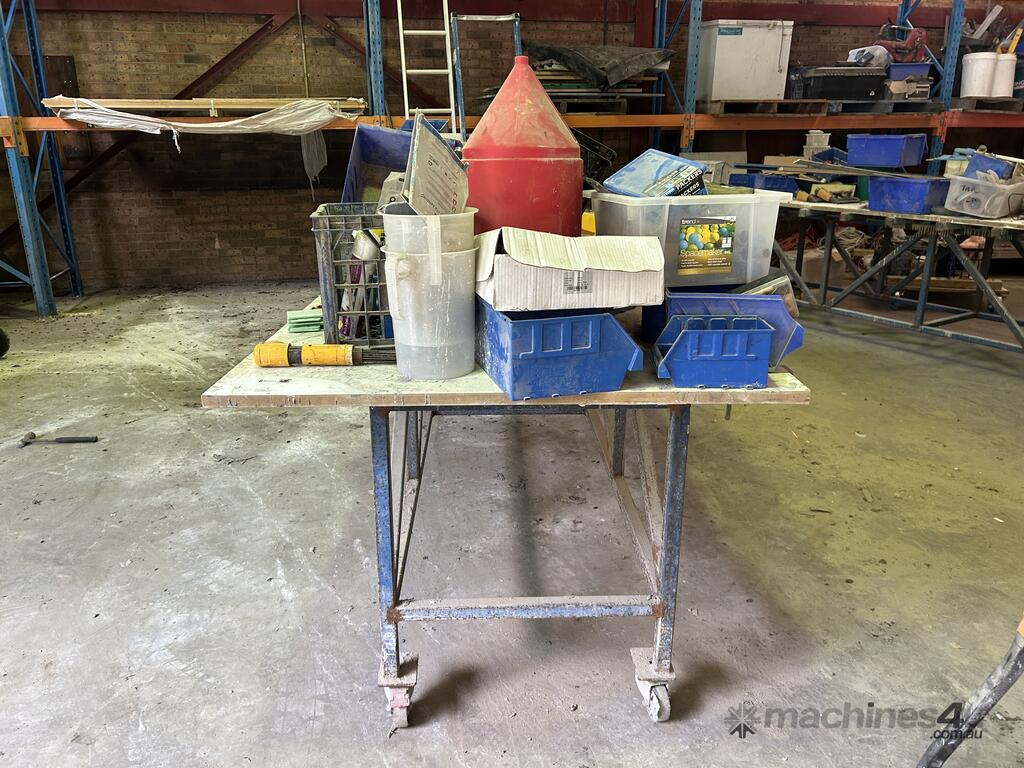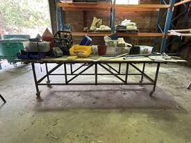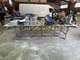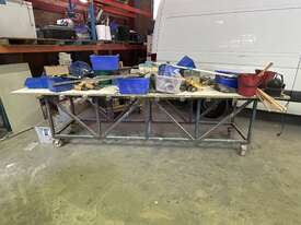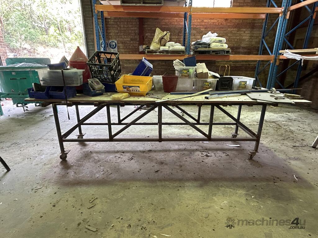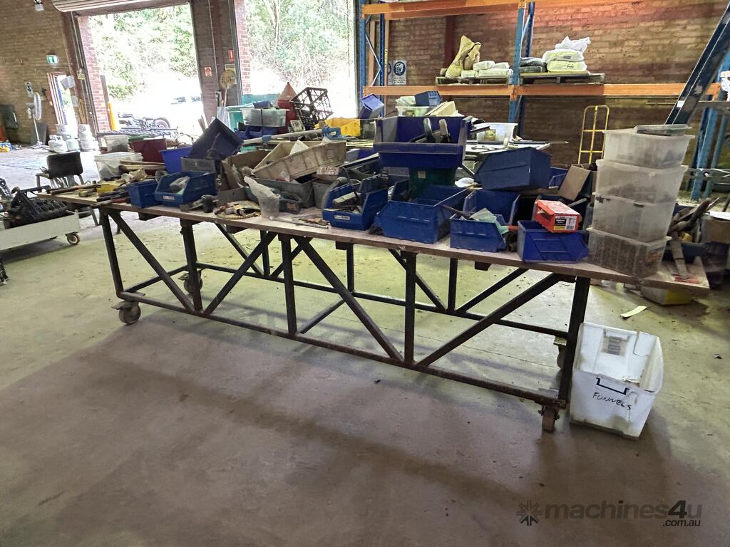 Wheels Fitted To Table Legs, Both Benches Are Approximately 3 Meters In Length, Both Benches Sold With All Items On Bench Top