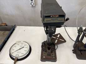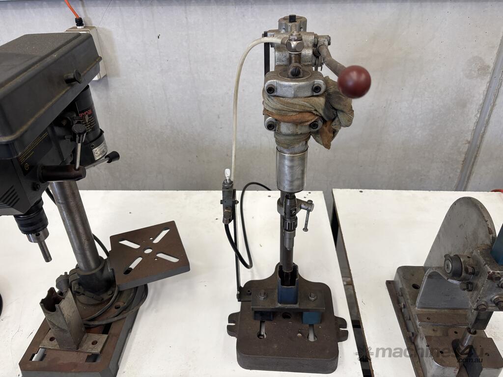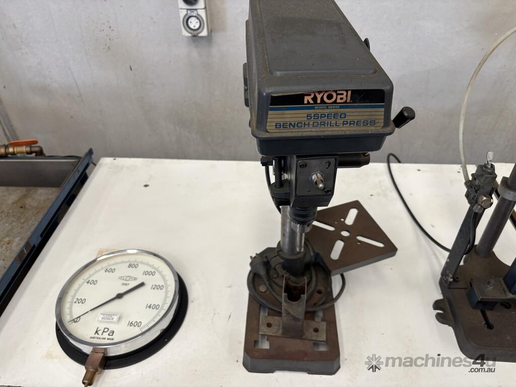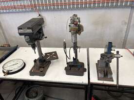 2 x Tables, Storage Shelf, Pedestal Drill inc Testing Tools :      Ask for Price