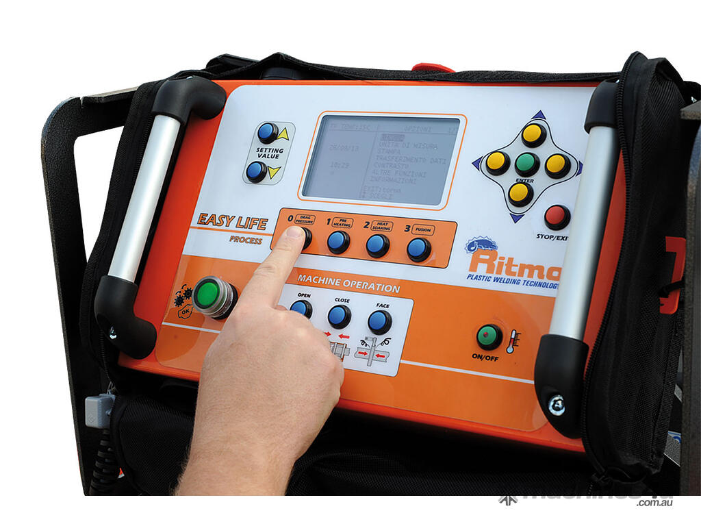 - An EASY LIFE control panel with a large graphic display and GPS traceability, which is also removable from the machine body to be able to weld from outside the ditch. Allows the operator to program and pilot all the welding cycle in an easy, fast and very intuitive way. Includes a data-logging system to store full welding data, downloadable through a USB port straight into PDF files. The EASY LIFE system has the capability store up to 4000 joint reports. Possibility to pre-set 20 customised.