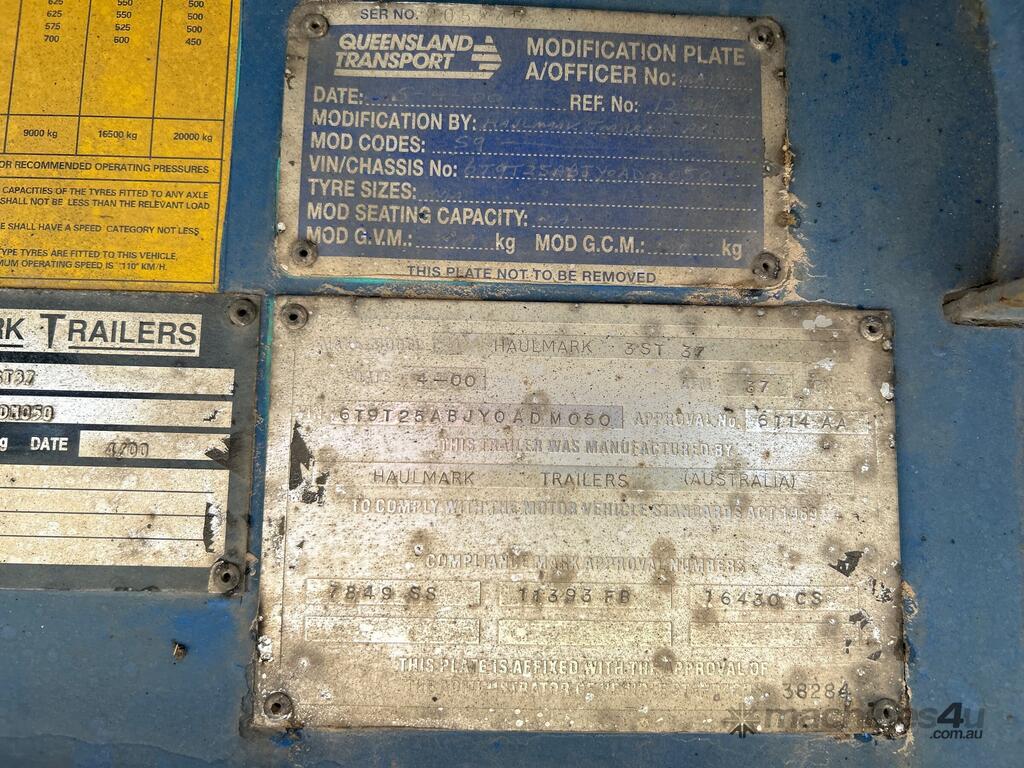 CP: 04/2000,Haulmark,Tri Axle Flat Top A Trailer,Hubometer not visible,Colour: Blue,Unregistered,VIN: 6T9T25ABJY0ADM050,Sold with No Plates
