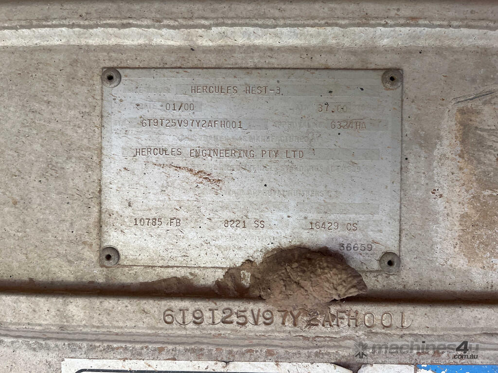 CP: 01/2000,Hercules,HEST-3,Tri Axle Aluminium Tipping B Trailer,Hubometer not visible,Colour: Red,Rego. No: NP(0916S2), Unregistered,VIN: 6T9T25V97Y2AFH001,Sold with No Plates,WOVR Status: WOVR N/A,Incident Type: Impact