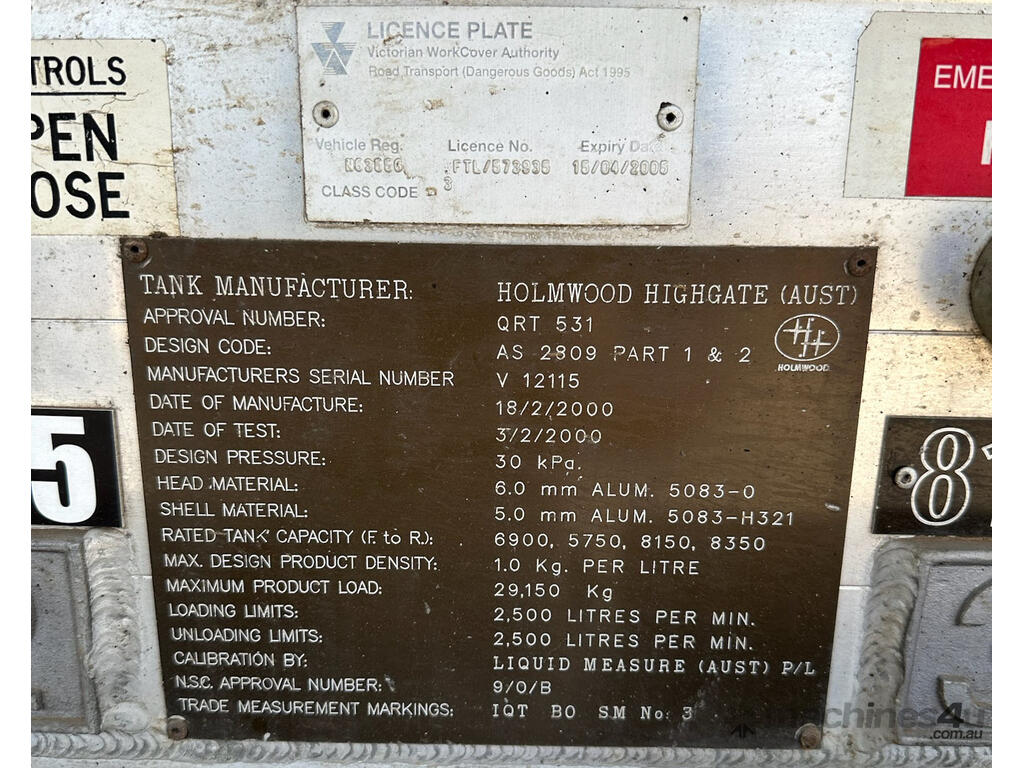 Type – Quad axle Tanker Trailer
