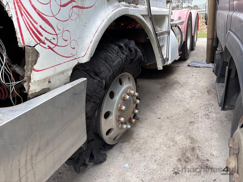 CP: 07/2000,Kenworth,K104,Prime Mover,Manual,Diesel,Odometer not visible,Hourmeter not visible,Colour: White,Rego. No: NP(AG14FL), Unregistered NSW,VIN: 6F5000000YA420791,Length: 21 ft,GVM: 24100,Sold with No Plates,WOVR Status: Repairable Write-Off,Incident Type: Impact