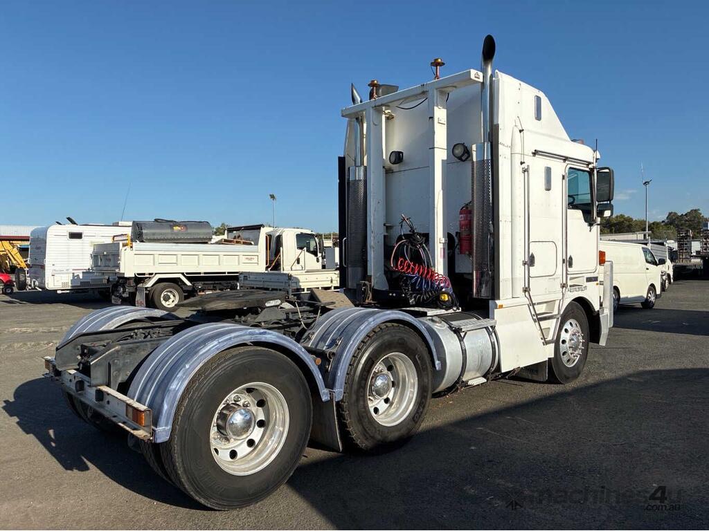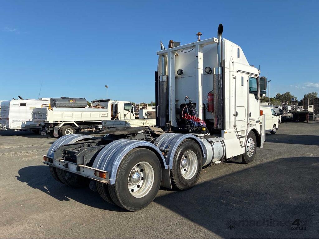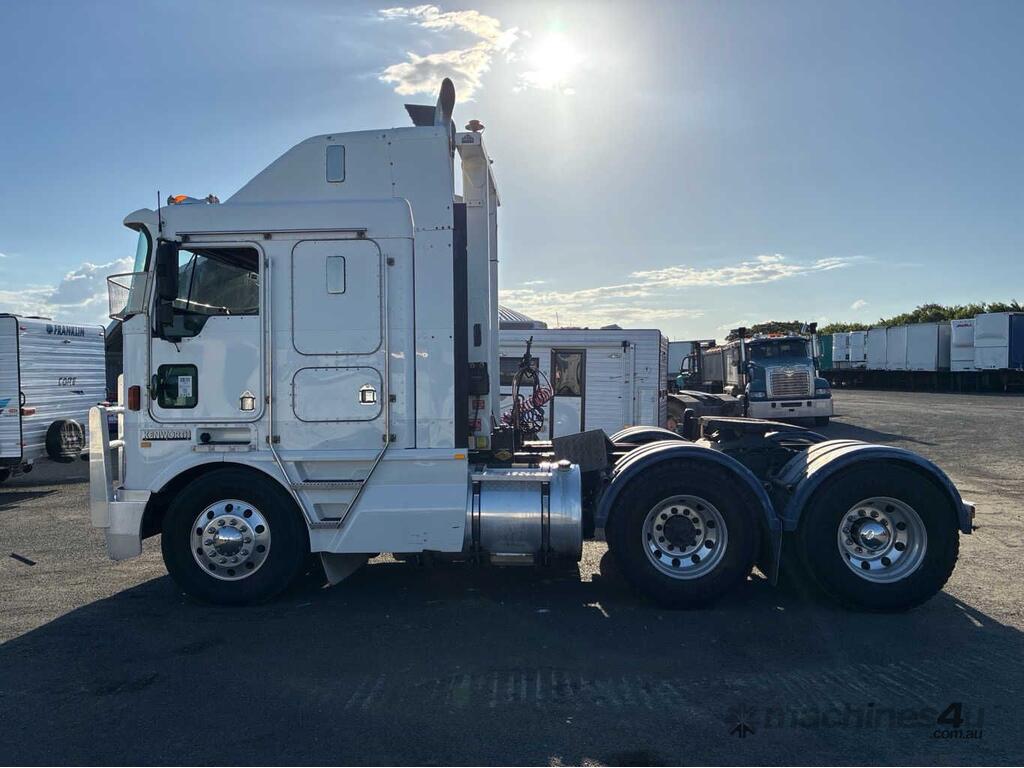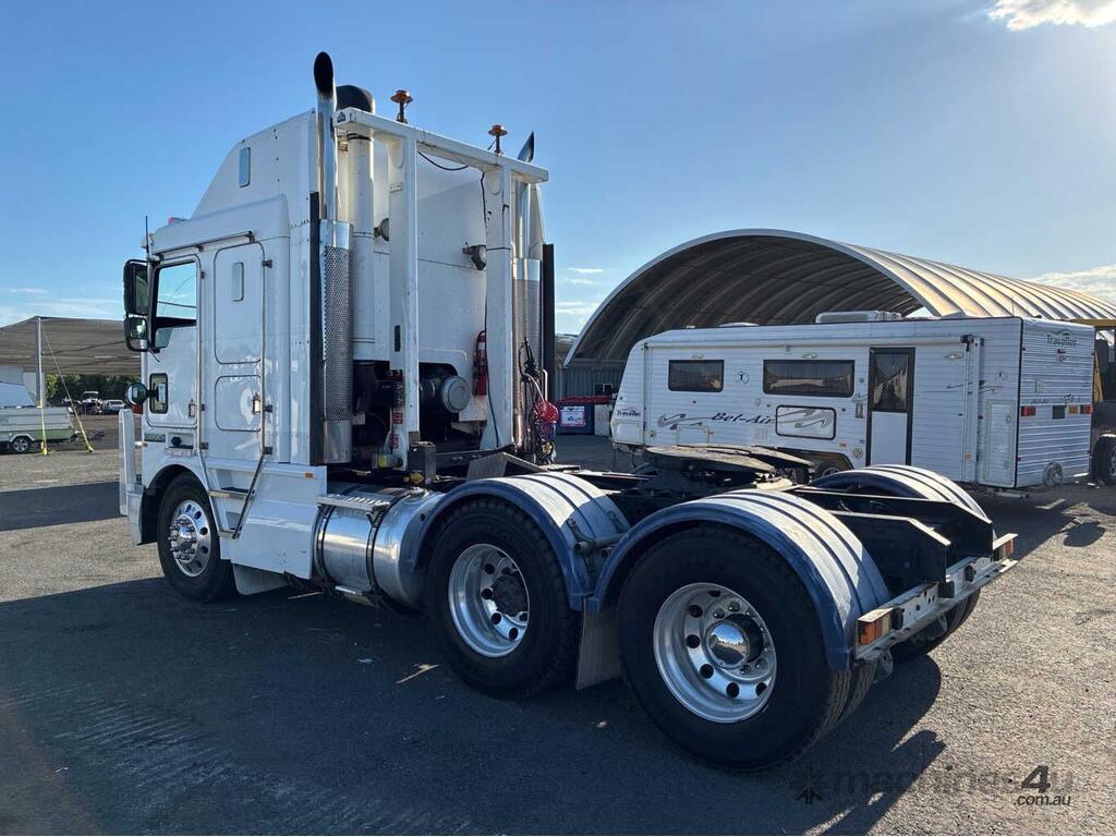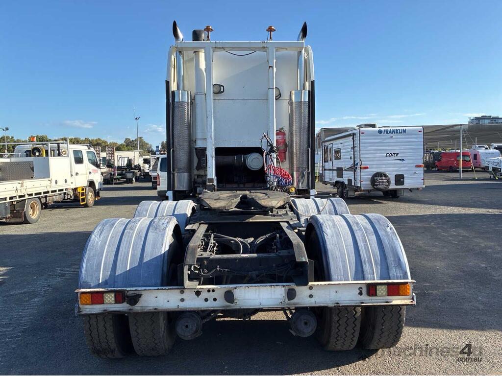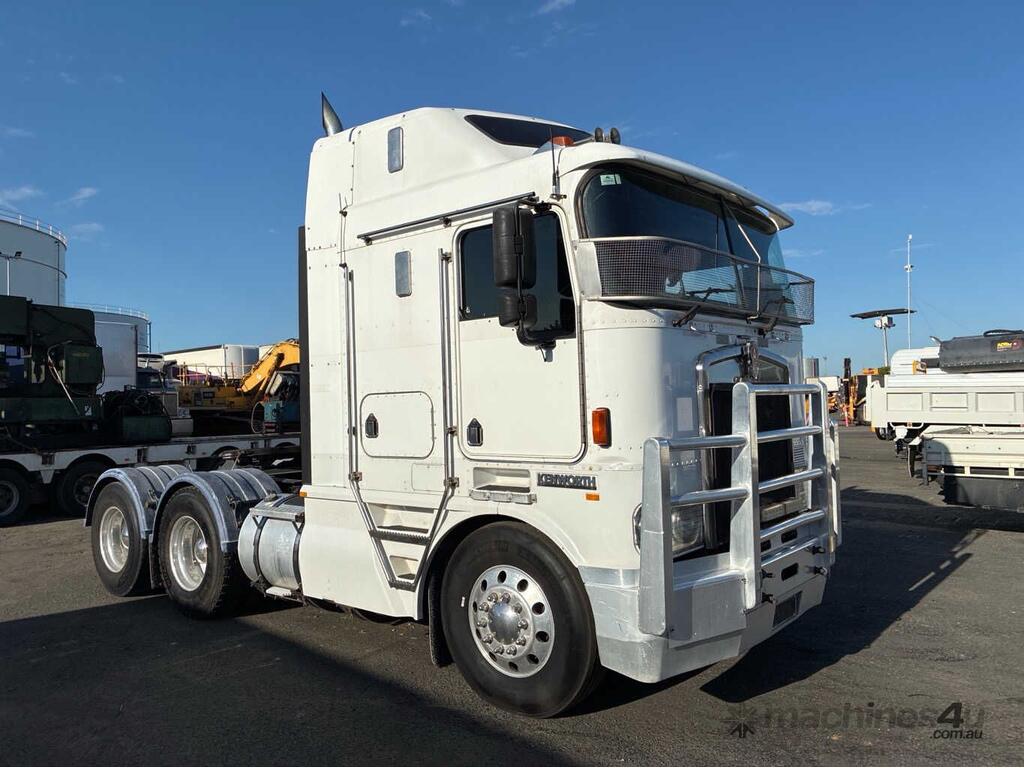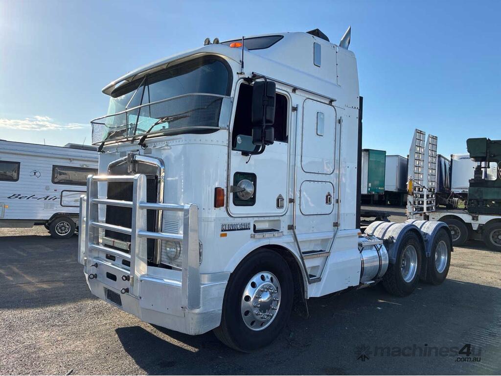 CP: 10/2000,Kenworth,K104,Prime Mover,Manual,Airbag,6 Cyl,Diesel,57823 (Kms. Showing on Odometer),2607 (Hrs. Showing on Hour meter),Colour: White,Rego. No: 1FX5RJ VIC,VIN: 6F5000000YA421042,Key No: 63,GVM: 24600,GCM: 70000,Sold with No Plates,Key No: 63