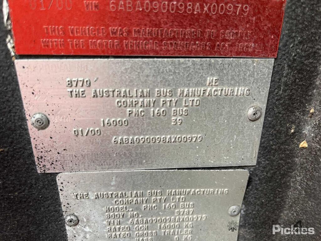 CP: 01/2000,MAN,NL202,Bus,Automatic,Air Bag,6 Cyl,CNG,124134 (Kms. Showing on Odometer),Hourmeter not visible,Colour: Yellow,Unregistered,VIN: 6ABA090098AX00979,GVM: 1600,Sold with No Plates,WOVR Status: WOVR N/A