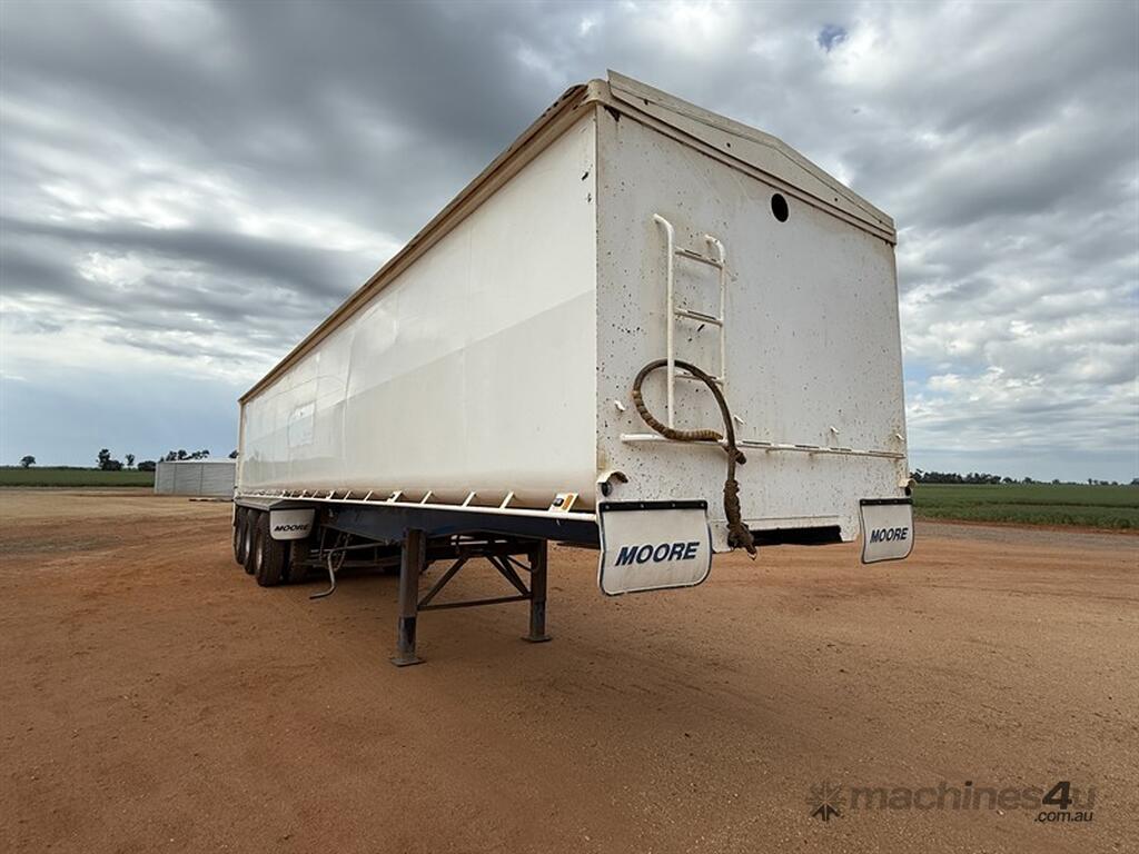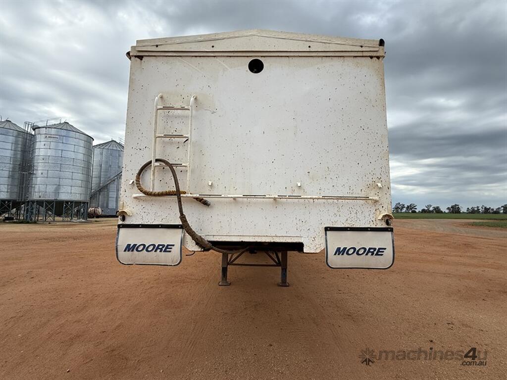 2000 MOORE 36 X 6 LEAD TIPPER. VIN 6T9T25AEJX0AAD119. TOA. Air suspension. Spider hubs. Road train lead. Right weigh scales. Water tank. Grain shute. 2 way tailgate. Small tear on tarp at the front, see photo. Bearings all repacked last season. Current NSW registration. Located Nevertire, NSW