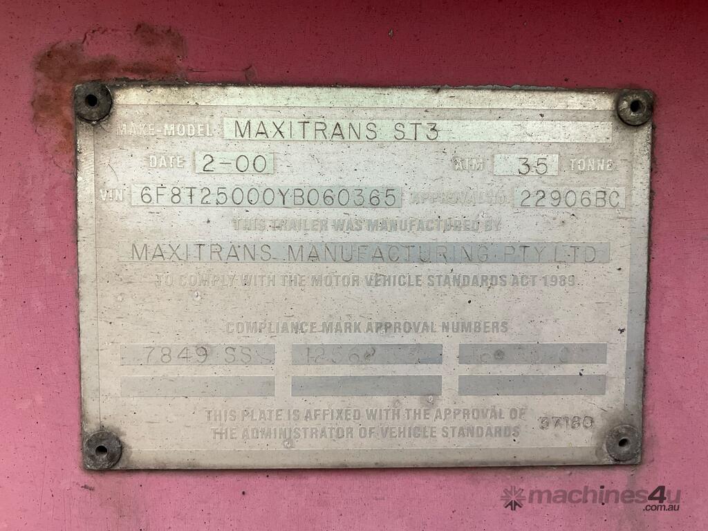 CP: 02/2000,Maxitrans,ST3,Tri Axle Refrigerated Rollback A Trailer,Hubometer not visible,Colour: White,Rego. No: NP(92773S), Unregistered,VIN: 6F8T25000YB060365,Sold with No Plates