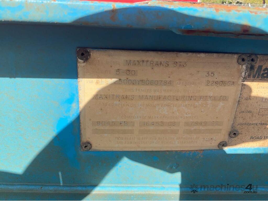 CP: 05/2000,Built: 05/2000,Maxitrans,ST3,Tri Axle Skel Trailer,647352 (Kms. Showing on Hubometer),Colour: Blue,Rego. No: NP(1UBL426), Unregistered WA,VIN: 6F8T25000YB060784,Sold with No Plates