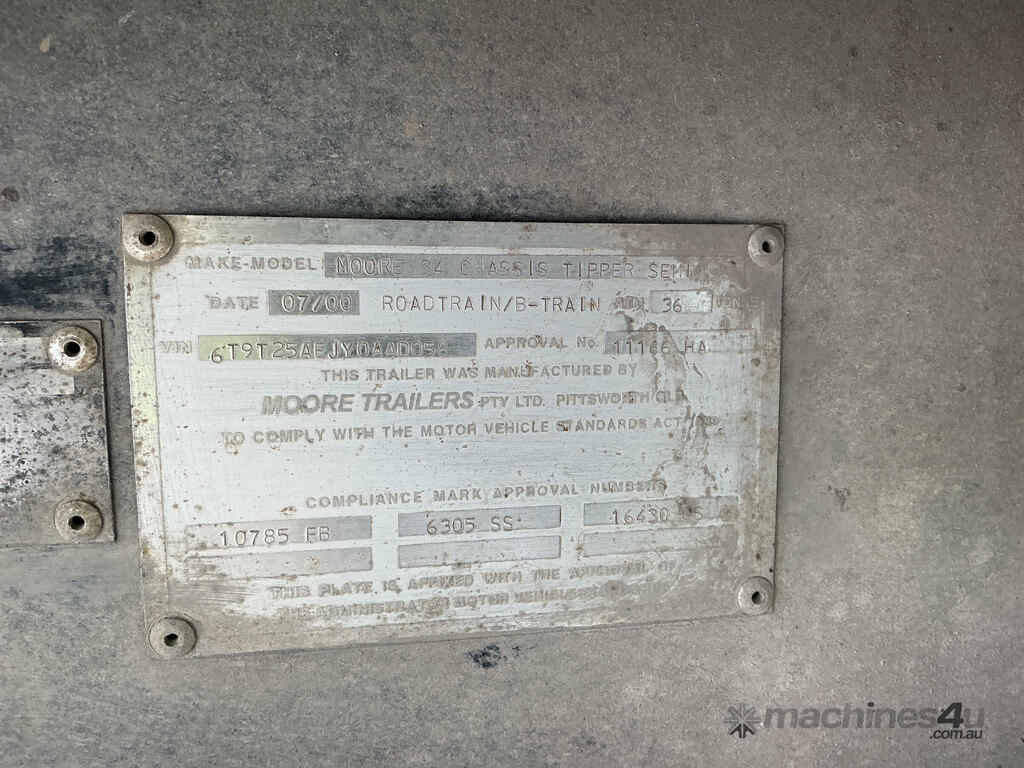 CP: 07/2000,Moore,Tri Axle Tipper,Tri Axle Tipping Trailer,Hubometer not visible,Colour: White,Rego. No: NP(YV36KJ), Unregistered VIC,VIN: 6T9T25AEJY0AAD058,Sold with No Plates,WOVR Status: WOVR N/A,Incident Type: Impact