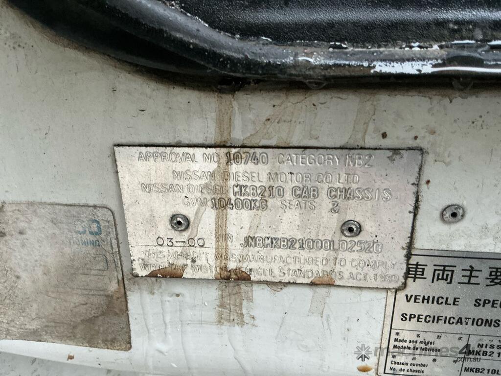 CP: 03/2000,Nissan UD,MKB210,Curtainsider,Manual,Diesel,589935 (Kms. Showing on Odometer),Hourmeter not visible,Colour: White,Rego. No: NP(QDZ809), Unregistered VIC,VIN: JNBMKB21000L02520,Length: 29 ft,GVM: 10400,Sold with No Plates,WOVR Status: WOVR N/A,Incident Type: Impact