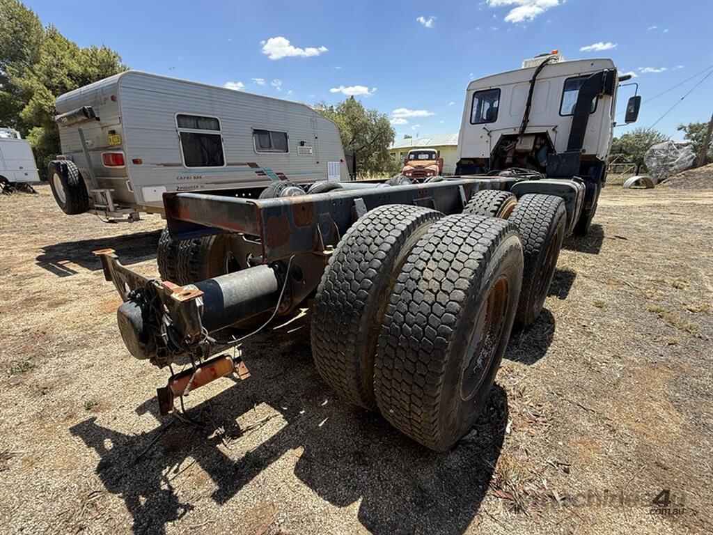 2000 TATRA AT815 6X6 HEAVY DUTY OFF ROAD 79000kgs 33000 6 SPEED MANUAL Reg Expiry: UNREGISTERED TRUCK VIN TNU26RR34WK031378. Battery isolator. 6WD. Air bag and spring suspension. Stinger diff extension. PTO. Super single steers. 10 stud steel rims. Erret roof top air con. Located Parkes, NSW