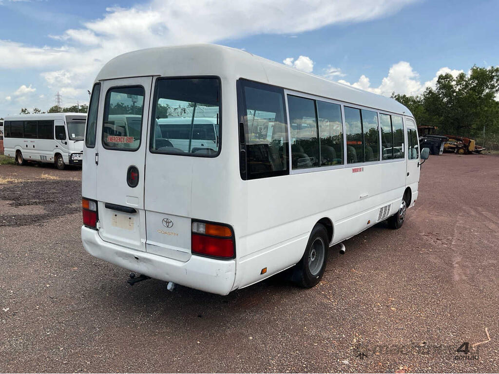 CP: 08/2000,Toyota,Coaster 50 Series,Bus,Manual,Leaf Springs,Toyota,Diesel,5 Gears,200318 (Kms. Showing on Odometer),Hourmeter not visible,Colour: White,Rego. No: NP(CF19ET), Unregistered NT,VIN: JTGFB06,Length: 6.2 M,GVM: 4990,Sold with No Plates,WOVR Status: WOVR N/A,Incident Type: Not Applicable