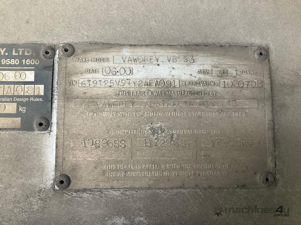 CP: 06/2000,Vawdrey,VB S3,Tri Axle Drop Deck Curtainsider B Trailer,Hubometer not visible,Colour: Blue,Unregistered,VIN: 6T9T25V97Y2AFA091,Sold with No Plates