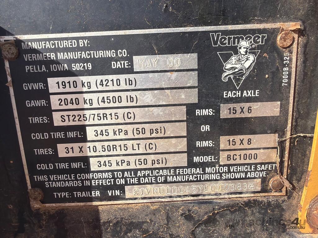 CP: 05/2000,Vermeer,BC1000,Diesel,Odometer not visible,1388 (Hrs. Showing on Hour meter),Colour: Yellow,Unregistered,VIN: 1VRU111A5Y1000383,Serial No: 1VRU111A5Y1000383,Sold with No Plates