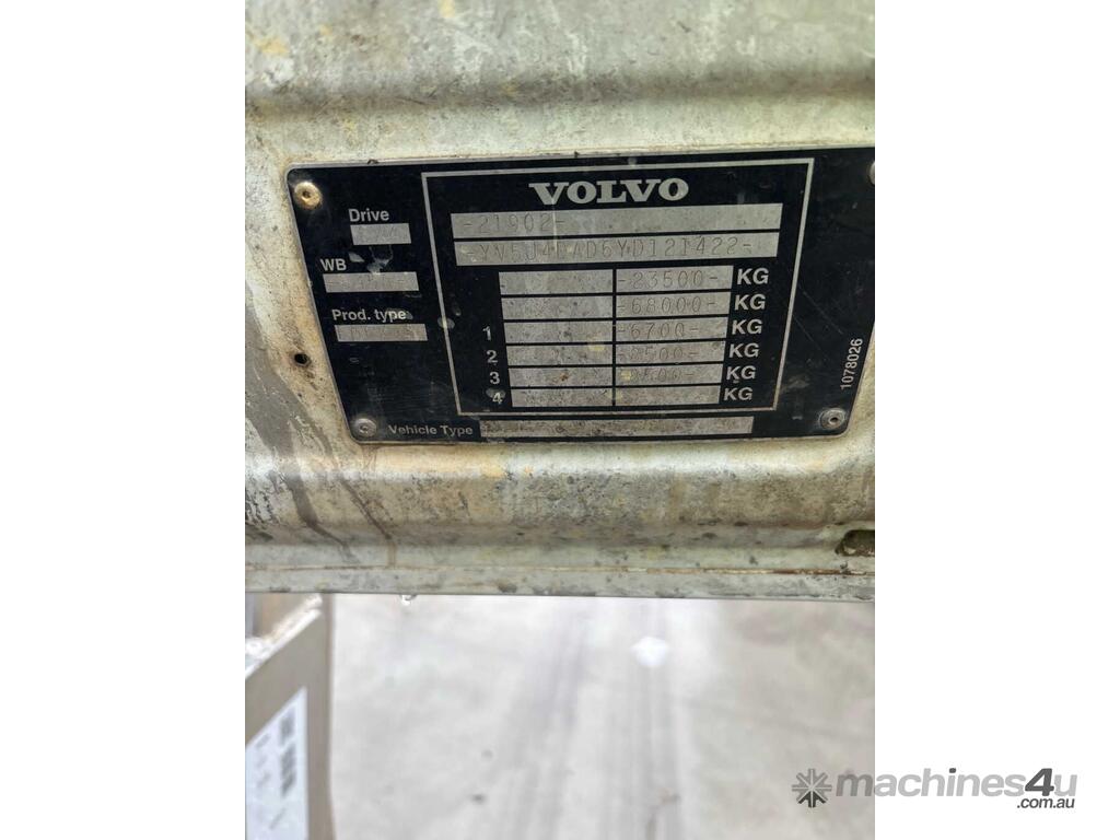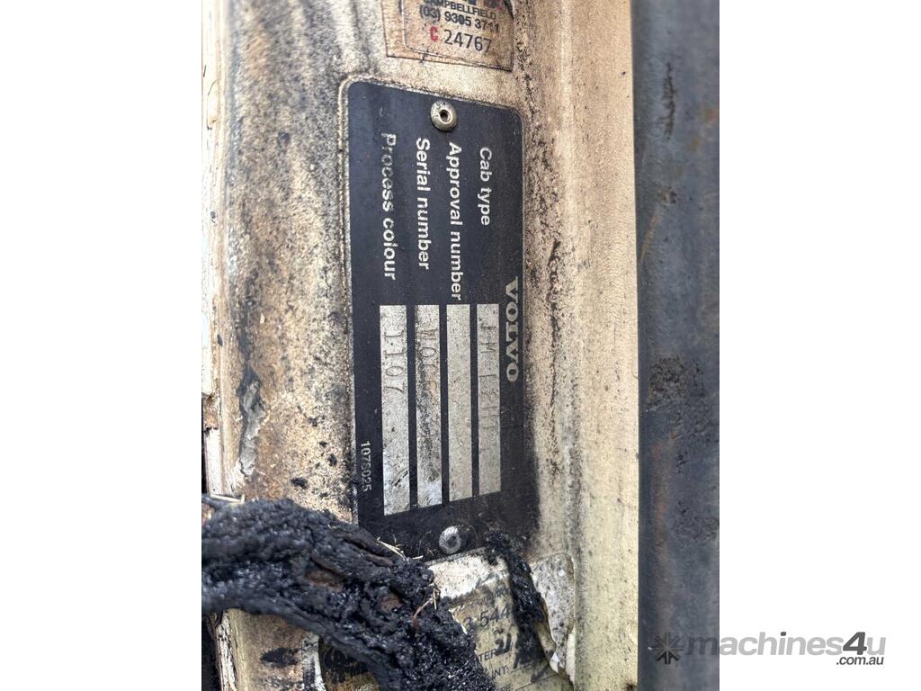 CP: 03/2000,Volvo,FM12,Flat Bed Tray,Manual,Diesel,Odometer not visible,Hourmeter not visible,Colour: Burnt,Rego. No: NP(44799F), Unregistered VIC,VIN: YV5J4DAD6YD121422,Length: 28 ft,GVM: 23500,Sold with No Plates,WOVR Status: WOVR N/A,Incident Type: Fire