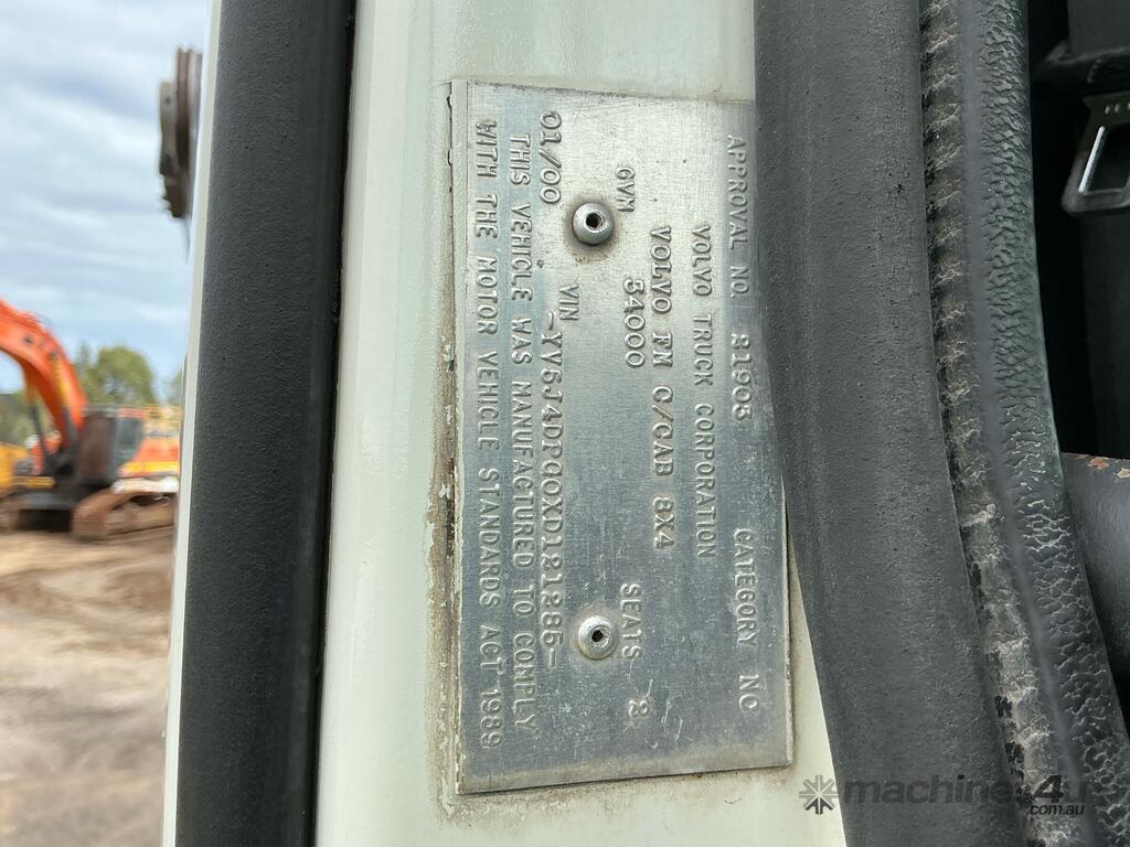 CP: 01/2000,Volvo,FM12,Tipper,Manual,Leafspring And Air,D12,12.1 Ltr,6 Cyl,Diesel Turbo,12 Gears,325248 (Kms. Showing on Odometer),15203 (Hrs. Showing on Hour meter),Colour: White,Rego. No: 1IBJ696 WA,Rego expiry: 23/11/2026,VIN: YV5J4DPG0XD121285,Key No: 573,Length: 8.5 m,GVM: 34000,GCM: 68000,Plates to All,Key No: 573