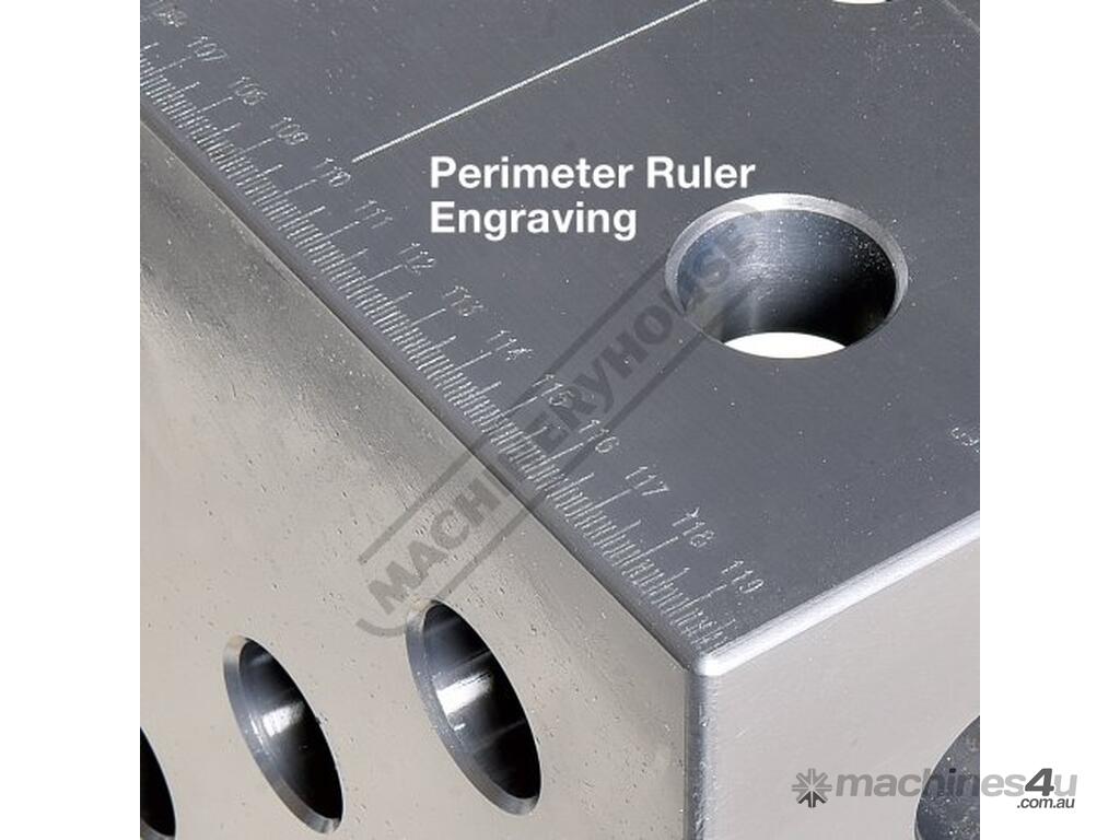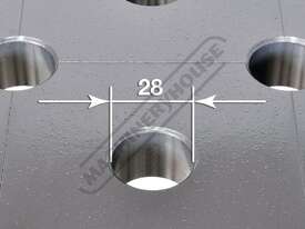 The Metalmaster M28 Pro Series welding tables features a welded & ribbed construction from heavy S355 plate steel, the frame is then CNC machined with the sides & top having a finished nominal thickness of 25mm. The CNC machining process is able to achieve a high flatness tolerance of +/- 0.1mm over 1m2 to give you a smooth precision welding surface. During this CNC machining process, the Ø28mm holes are precision bored to ensure a hole distance tolerance of +/- 0.05mm & with a diagonal style hole pattern it gives you a multitude of fixture holes to suit your application. Before removing the table from the machining centre, we engrave 100mm grid lines & perimeter ruler to give you millimetre precision helping you minimise mistakes while increasing productivity.