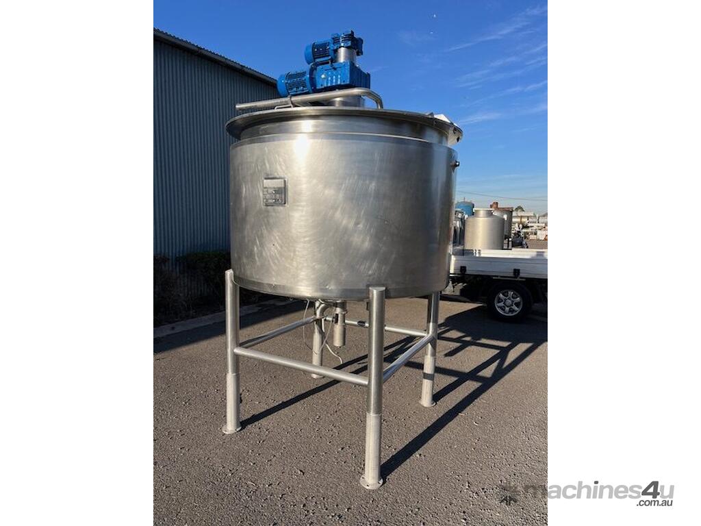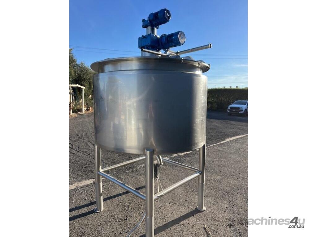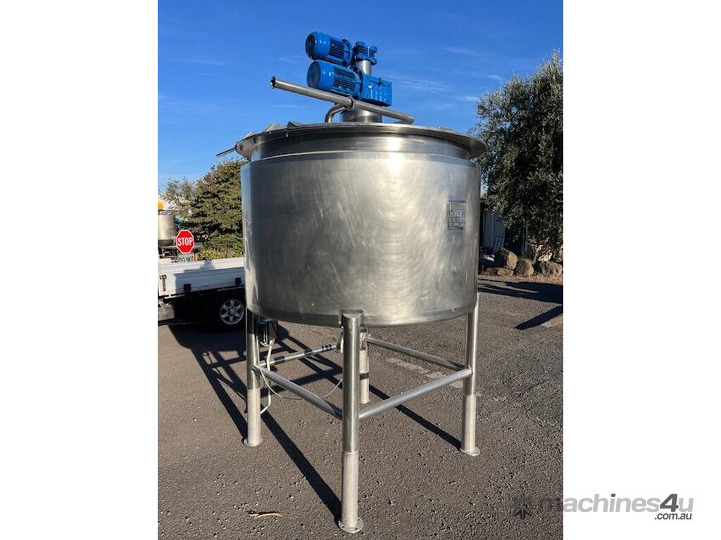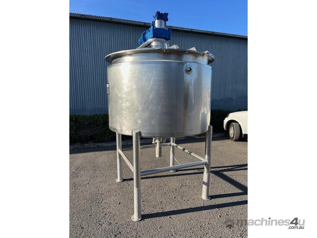 A quality Australian-built IOPAK Process Systems jacketed mixing vessel is now available for immediate sale. Constructed in food-grade 316 stainless steel with a polished interior, this tank is fitted with a dual top-mounted motor drive powering a planetary anchor agitator complete with wall scraper blades – perfect for heating, mixing, and processing viscous or temperature-sensitive products. The steam or hot water jacket is rated to 300 kPa at 150°C, and the vessel includes internal CIP spray ball for hygienic clean-in-place wash down. Mounted on a sturdy stainless steel leg frame, this vessel is ready to work in your food, dairy, sauce, confectionery, cosmetic, or pharmaceutical processing facility.