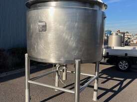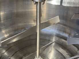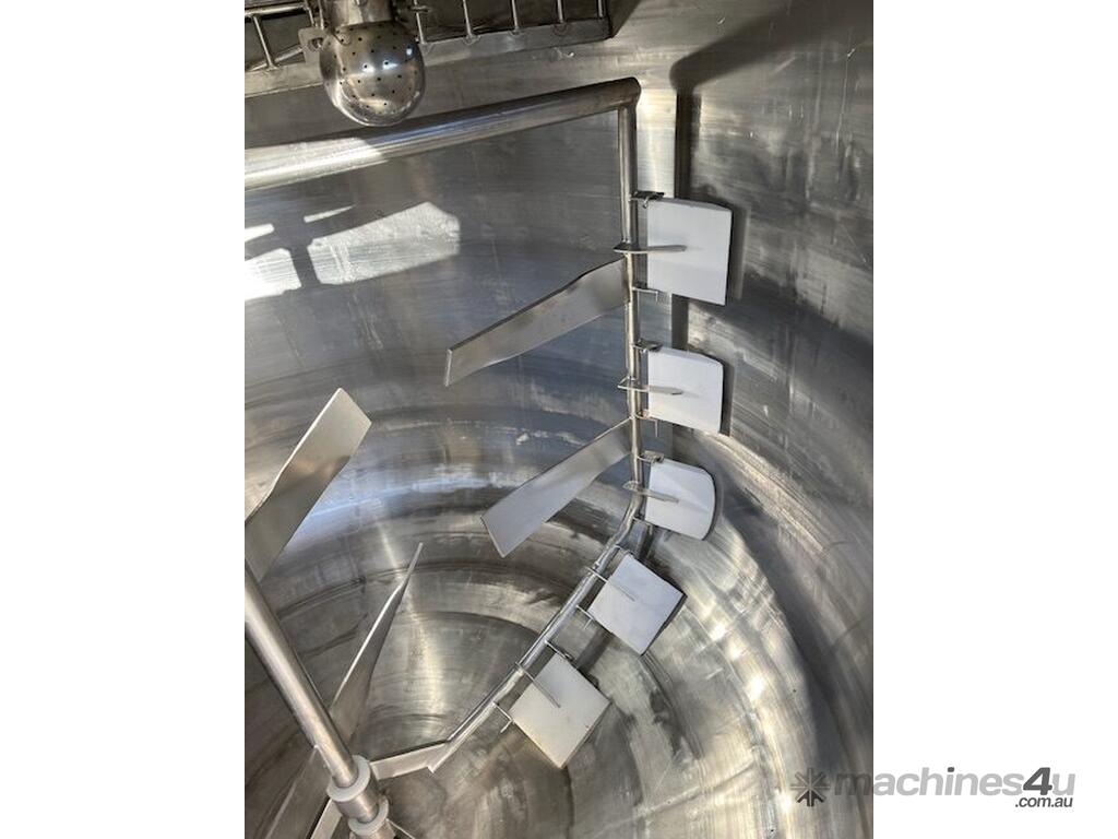 Used steam jacketed kettle has a 2000 L capacity and is designed for industrial food processing applications, including sauces, soups, jams, and confectionery. Constructed from AISI 316 stainless steel, it incorporates a steam jacket for controlled heating and cooling. A contra-rotating agitator system, combined with Teflon-tipped scrapers, ensures uniform mixing and prevents product buildup. The digital temperature indicator and PT100 probe provide process monitoring, while the air-actuated discharge valve enables efficient product transfer. The unit’s hygienic design and ease of cleaning support food safety and production efficiency.
