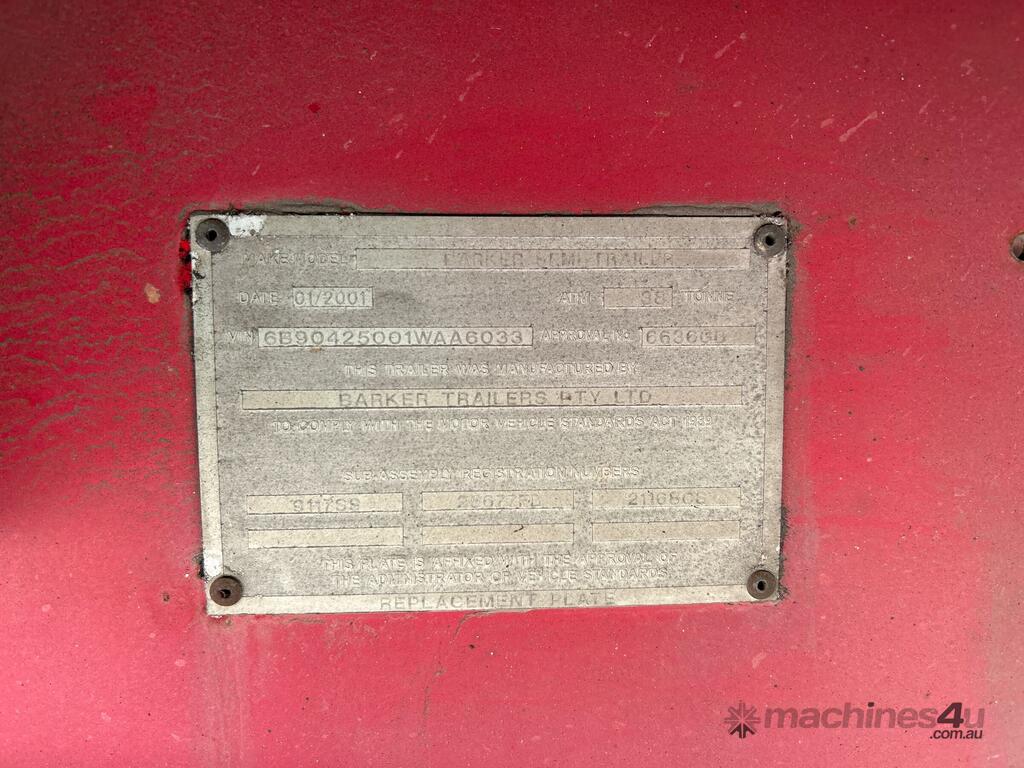CP: 01/2001,Barker,Heavy Duty Tri Axle,Tri Axle Curtainside A Trailer,Hubometer not visible,Colour: Red,Rego. No: NP(YB57EB), Unregistered NAT,VIN: 6B90425001WAA6033,Sold with No Plates