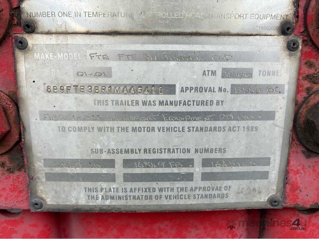CP: 01/2001,FTE,Tri Axle Refrigerated Pantech Trailer,Hubometer not visible,Colour: White,Rego. No: NP(154QYH), Unregistered QLD,VIN: 6B9FTE3BR1MAA5410,Sold with No Plates