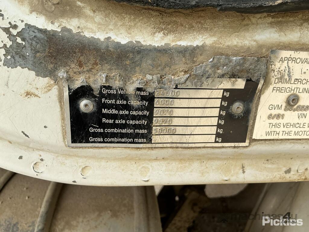 CP: 06/2001,Freightliner,FL112,Day Tipper,Manual,Airbag Suspension,Cat C12,Diesel,18 Gears,Odometer not visible,Hourmeter not visible,Colour: White,Rego. No: CO06AC NSW,VIN: 1FVXTWEB1YH958620,GVM: 24000,GCM: 50000,Sold with No Plates
