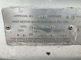 CP: 01/2001,Hino,FG1J,Attenuator,Automatic,Spring ,6 Cyl,Diesel,39828 (Kms. Showing on Odometer),Hourmeter not visible,Colour: White,Rego. No: NP(XO01RB), Unregistered NSW,VIN: JHDFG1JMLXXX10159,Length: 13 ft,GVM: 15000,GCM: 15000,Sold with No Plates,WOVR Status: Statutory Write-Off,Incident Type: Water